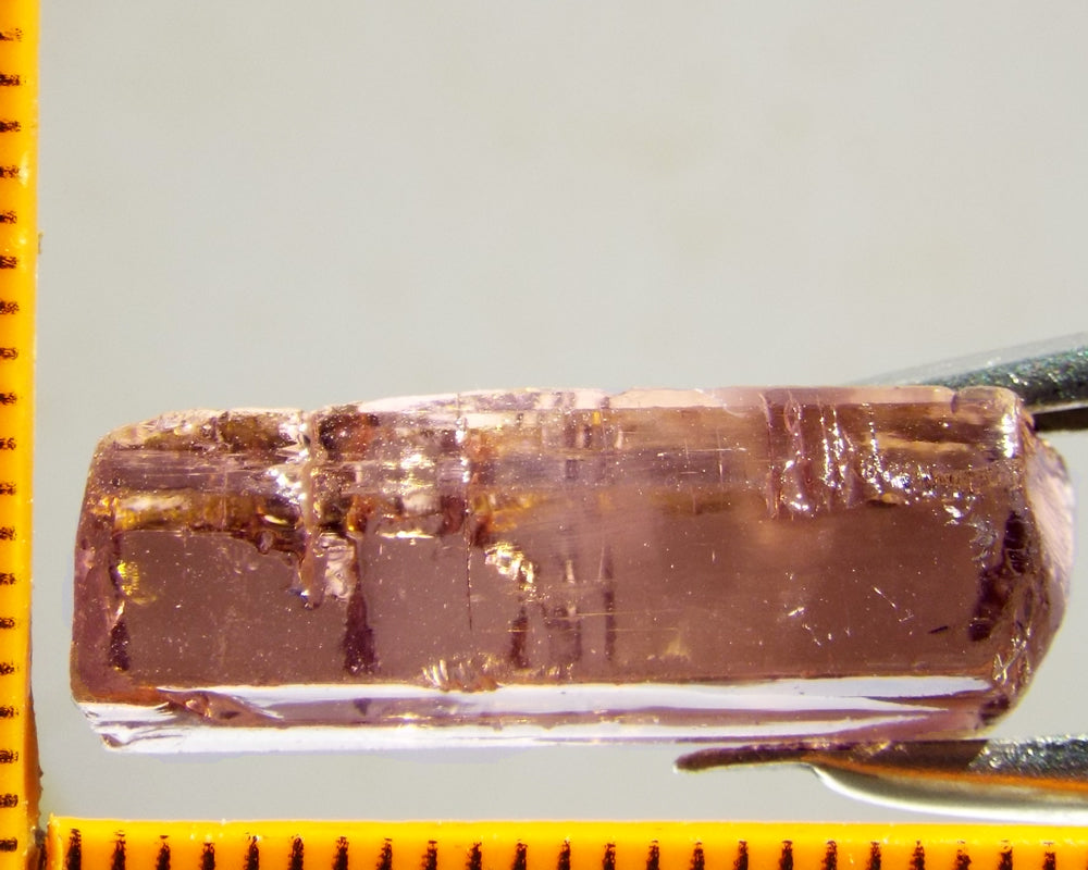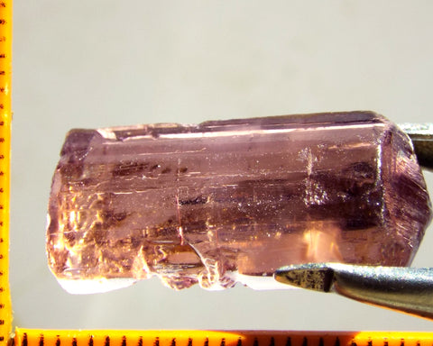 A  bright, medium-strong pink-purple stone from the Congo, showing an open 'C' axis.