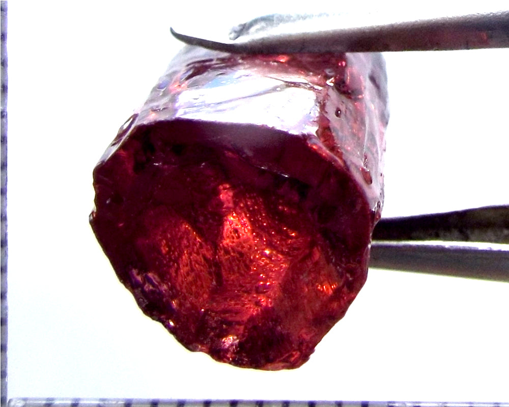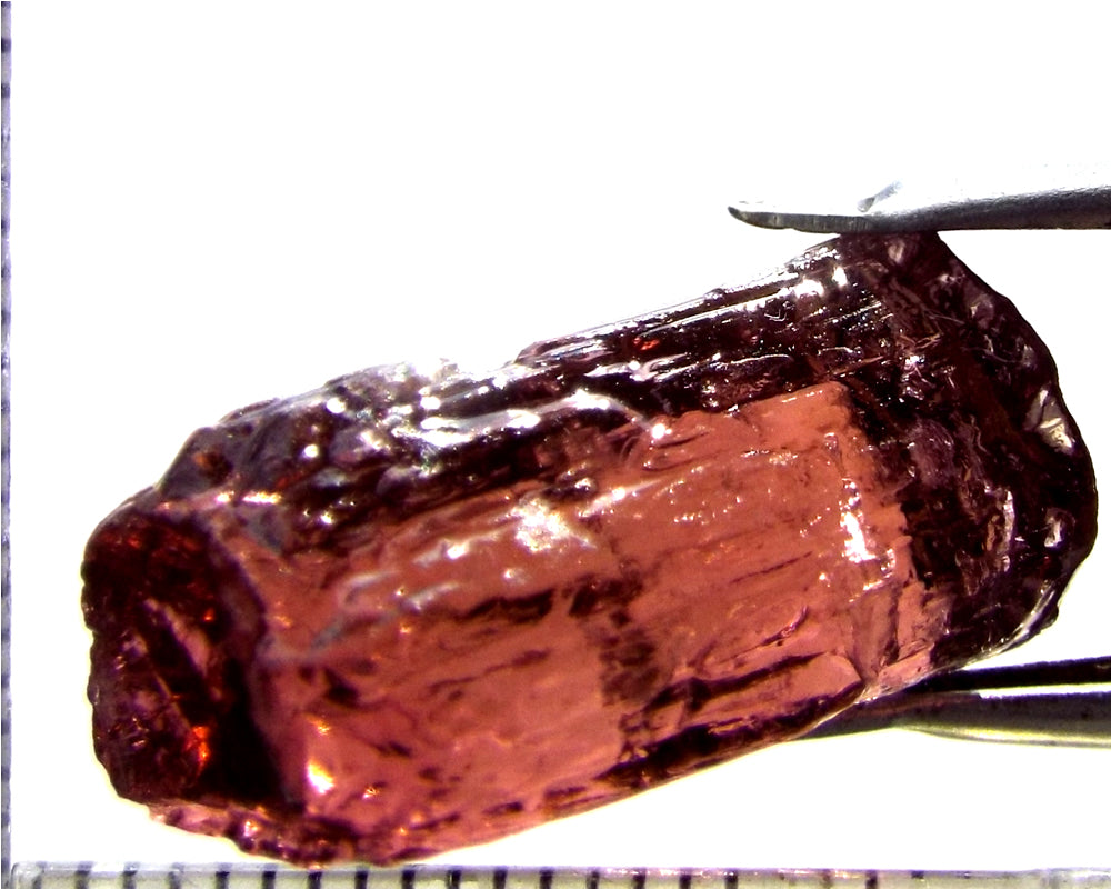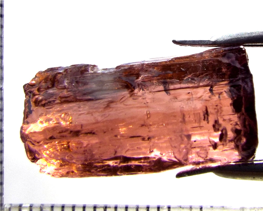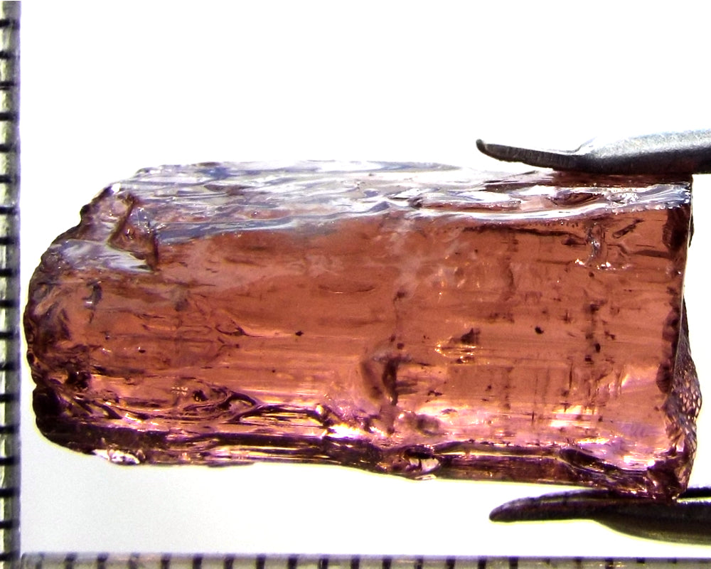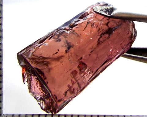 A  bright strong purple-pink stone from Mozambique, showing a deeper purple-pink 'C' axis.
