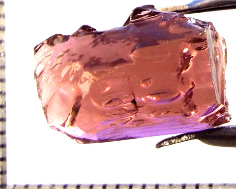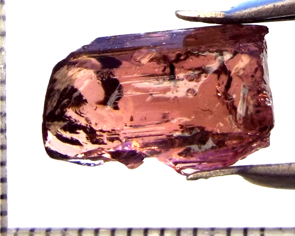 A bright medium purple-pink stone from Mozambique, showing a deeper purple-pink 'C' axis.