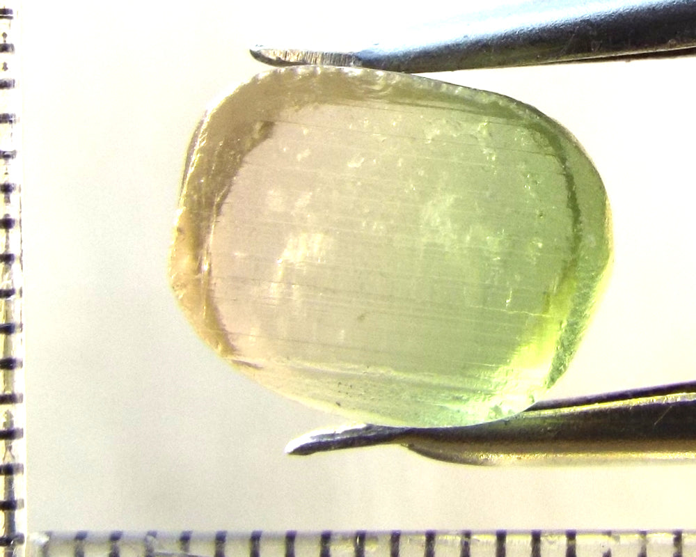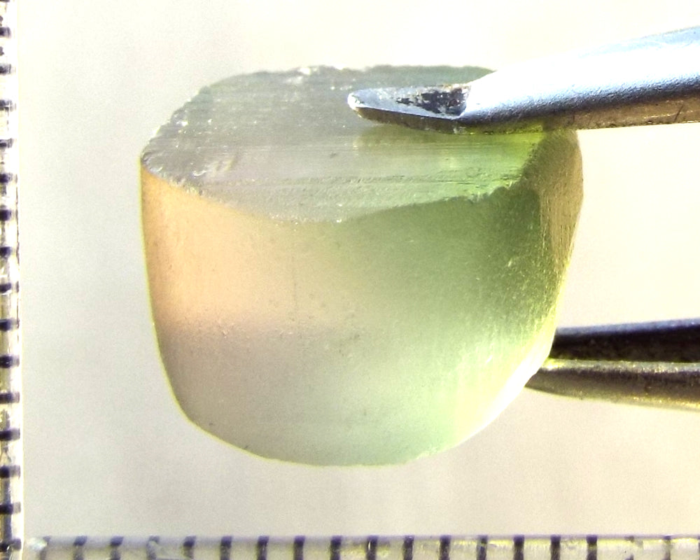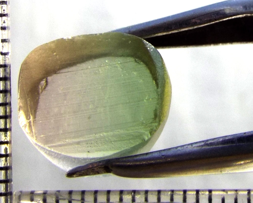 A  pastel light green to pink stone from Nigeria, light pink to green 'C' axis.