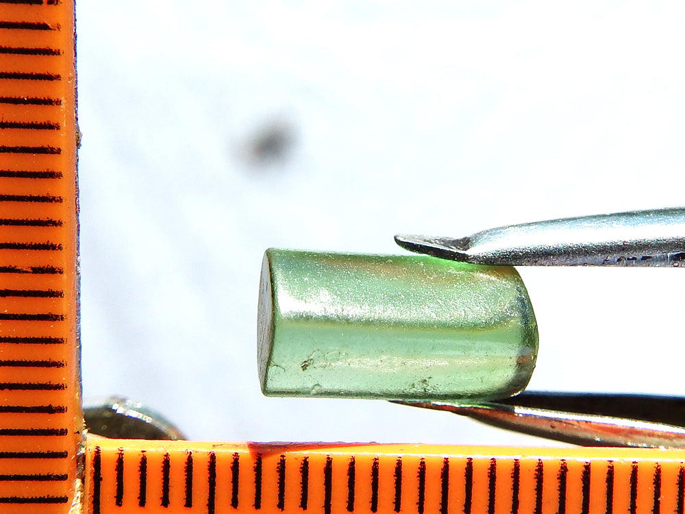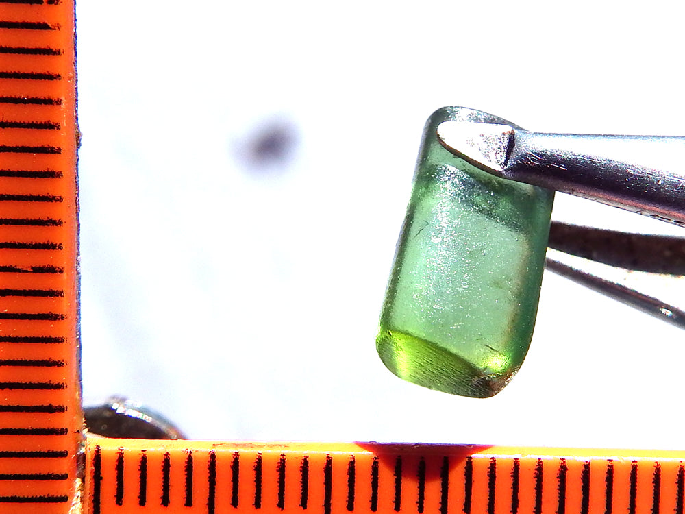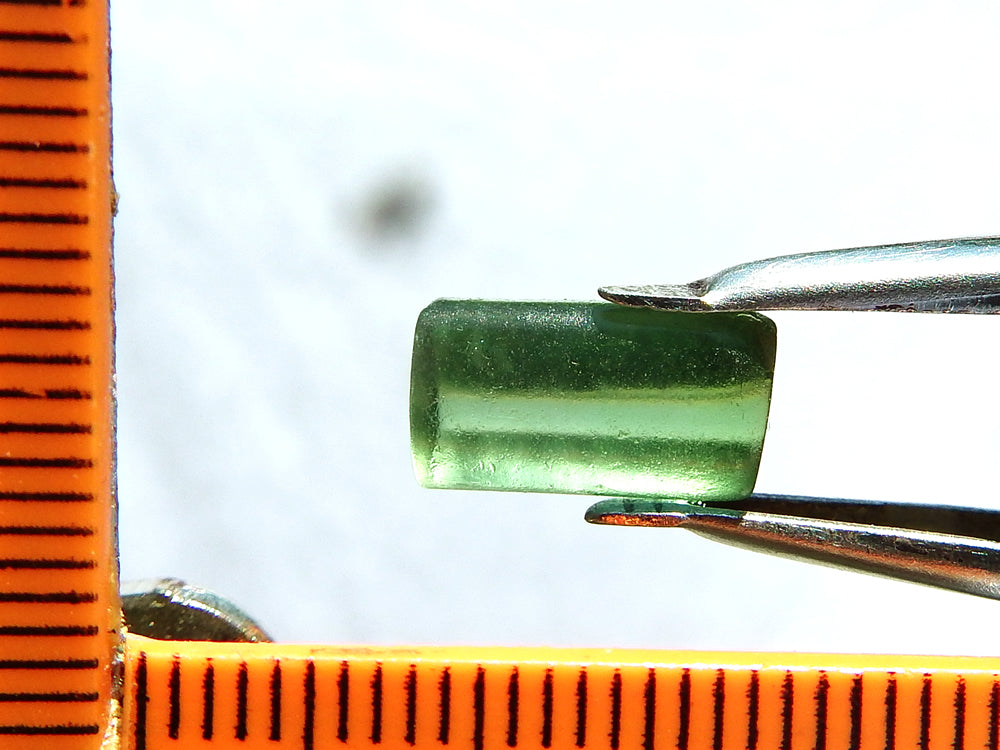 A  bright light green stone from Nigeria, semi-open 'C' axis.