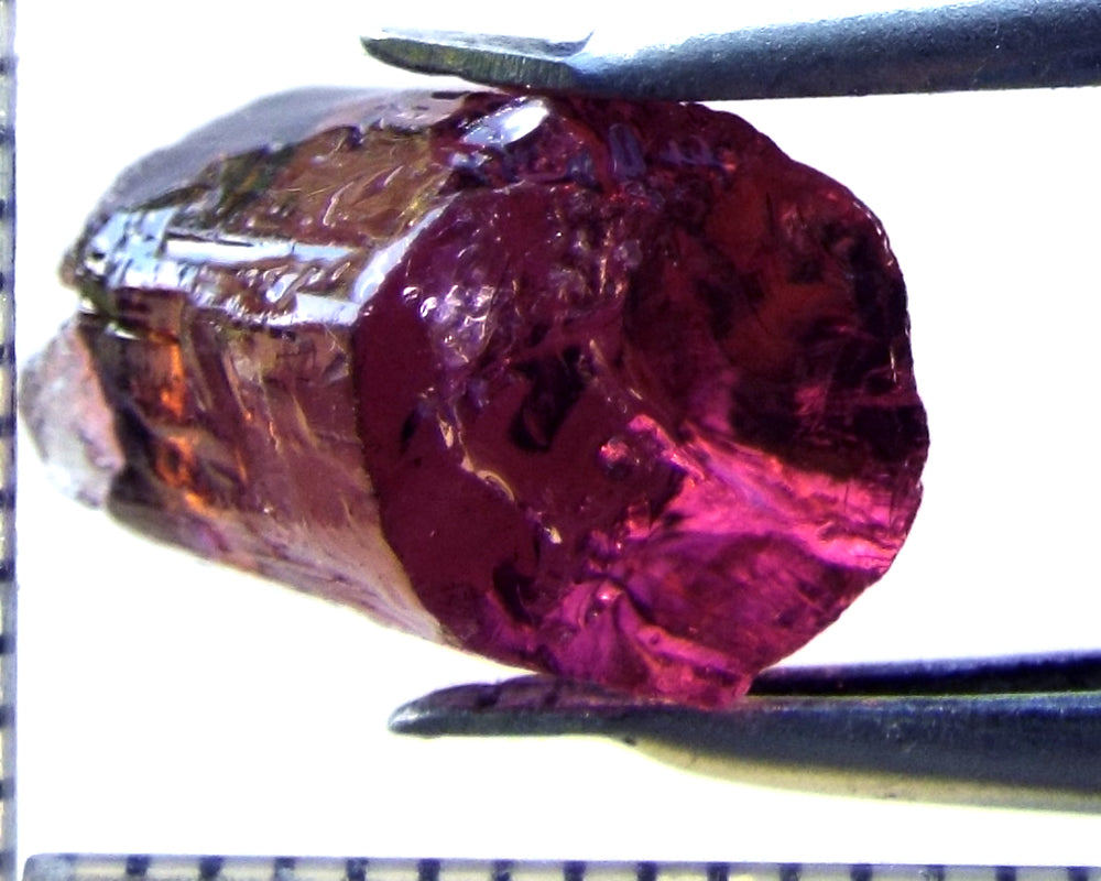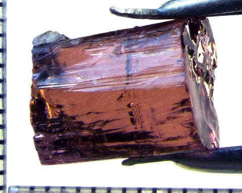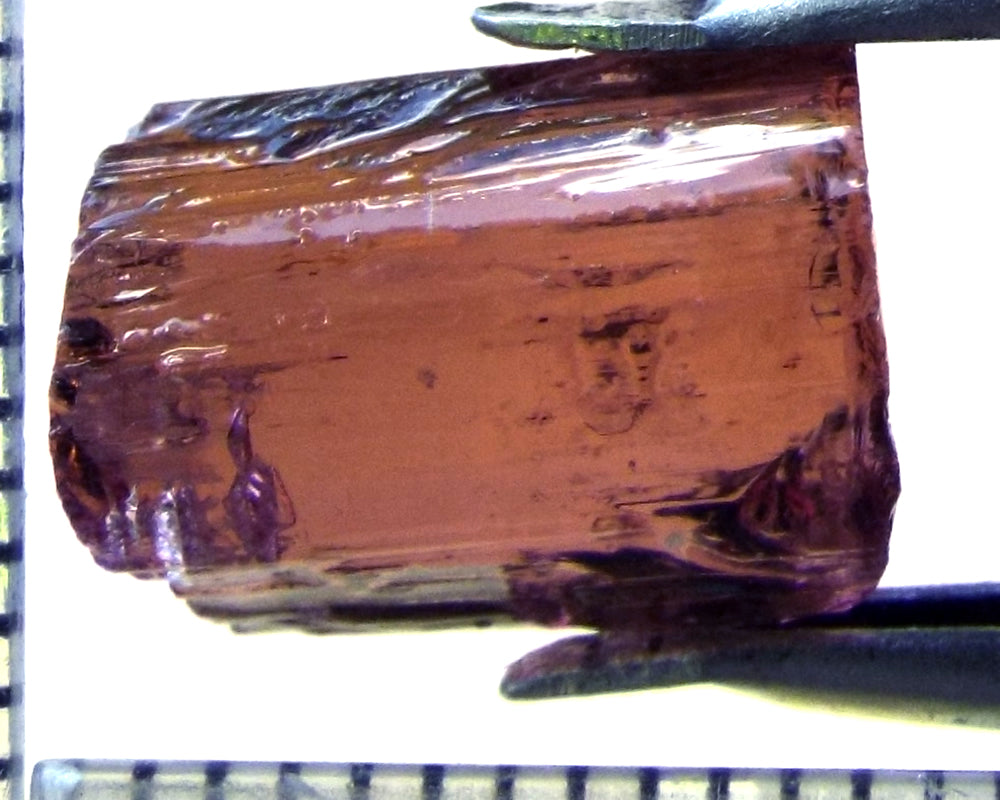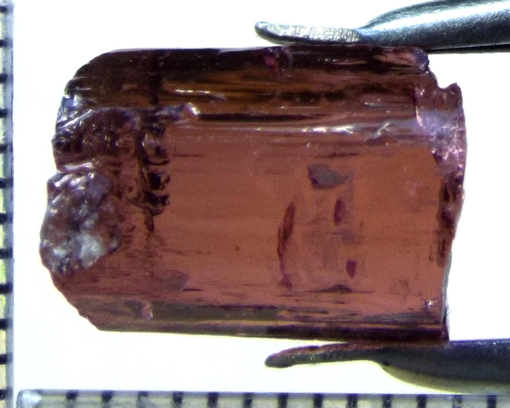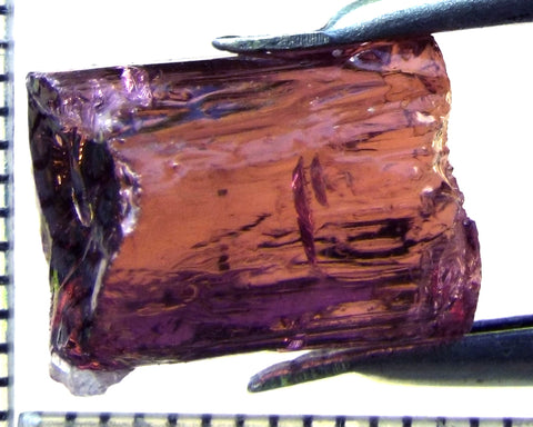 Tourmaline – Mozambique – 9.61 cts - Ref. TOB-583 A bright strong purple-pink stone from Mozambique, showing a deeper purple-pink 'C' axis. Graded AAA and weighing 9.61cts. Priced at just $10.00 per carat, a total of $96.00 The scale shown is in millimetres Now beat that for value!