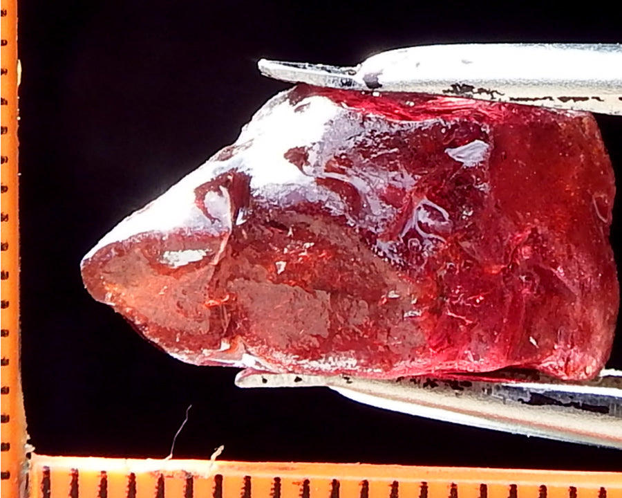A superb, strong pink colour, slight bubbles as inclusions, no fractures or cracks, this stone would cut a stunning cabochon.