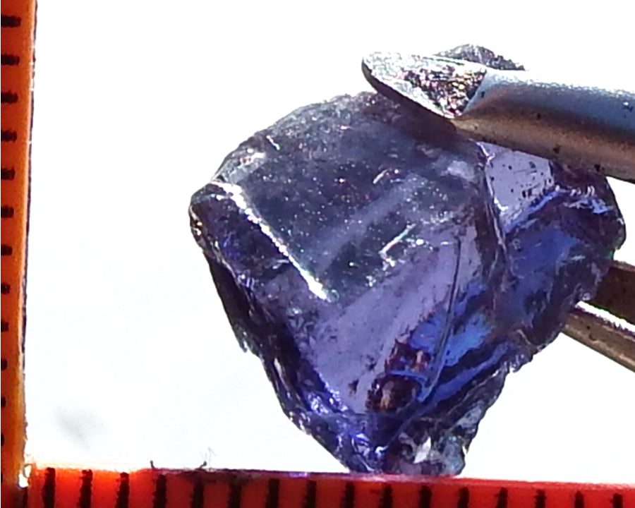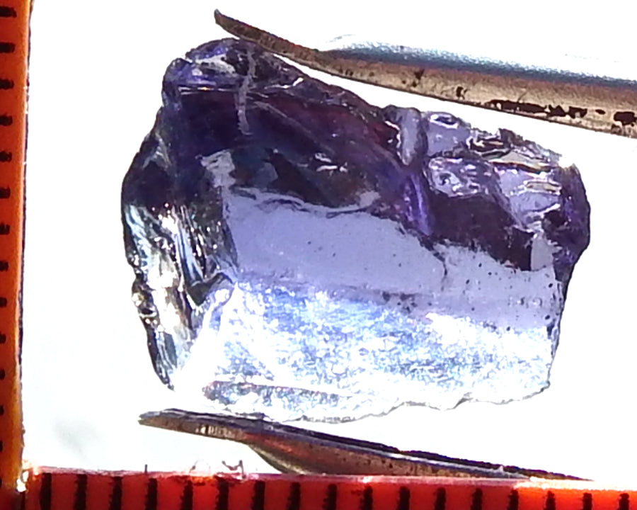 A very attractive Iolite from India, sawn to display the best colour. Iolite is a strongly dichroic stone, that is, it shows a strong purple-blue colour on the one axis and a light grey-purple on the other axis
