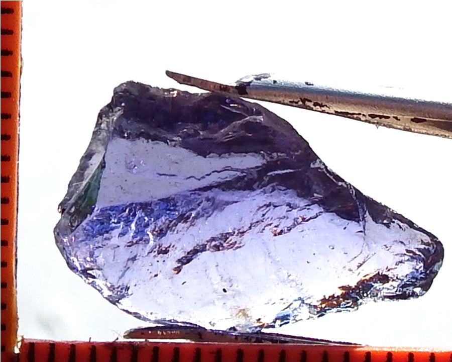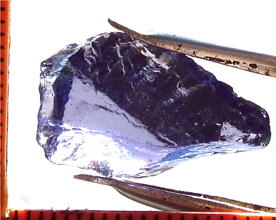 A very attractive Iolite from India, sawn to display the best colour. Iolite is a strongly dichroic stone, that is, it shows a strong purple-blue colour on the one axis and a light grey-purple on the other axis