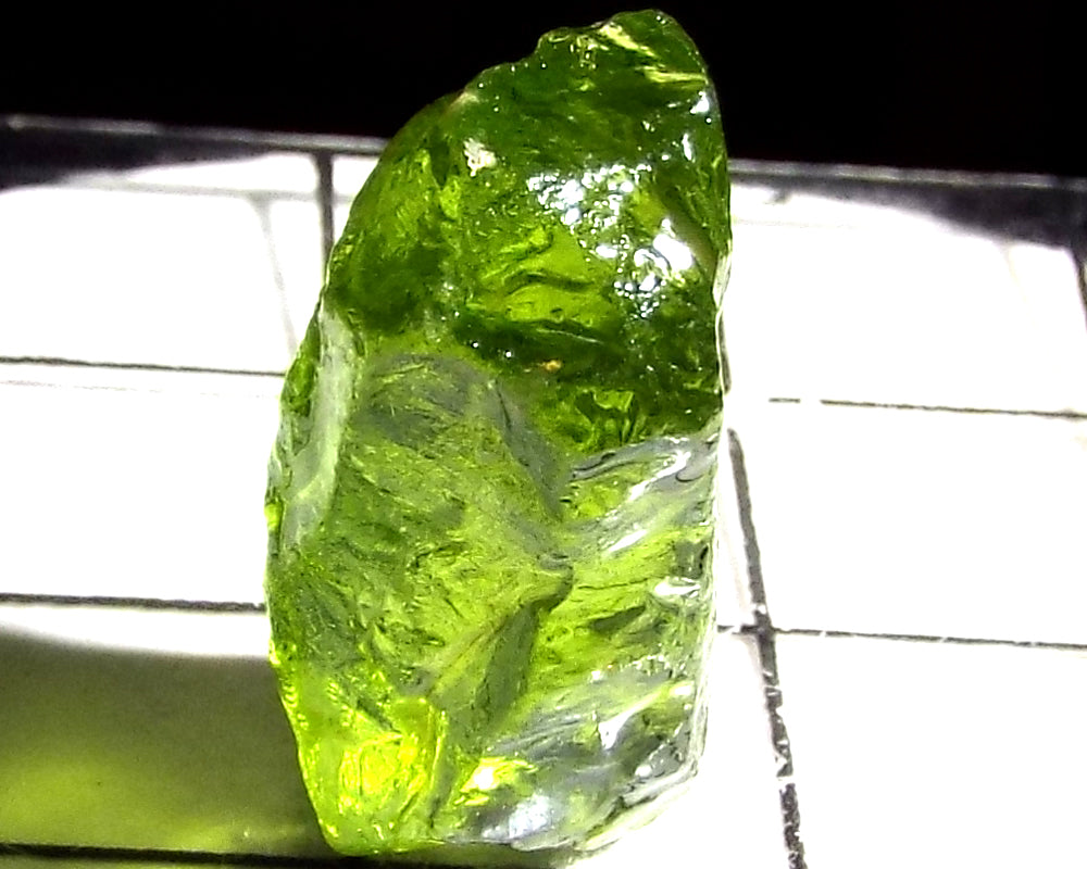 A bright medium green-yellow stone from the China/Afghanistan border area.