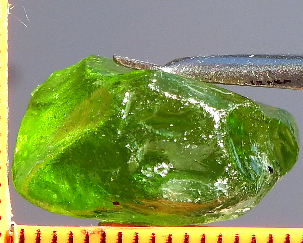 A bright medium green-yellow stone from the China/Afghanistan border area.