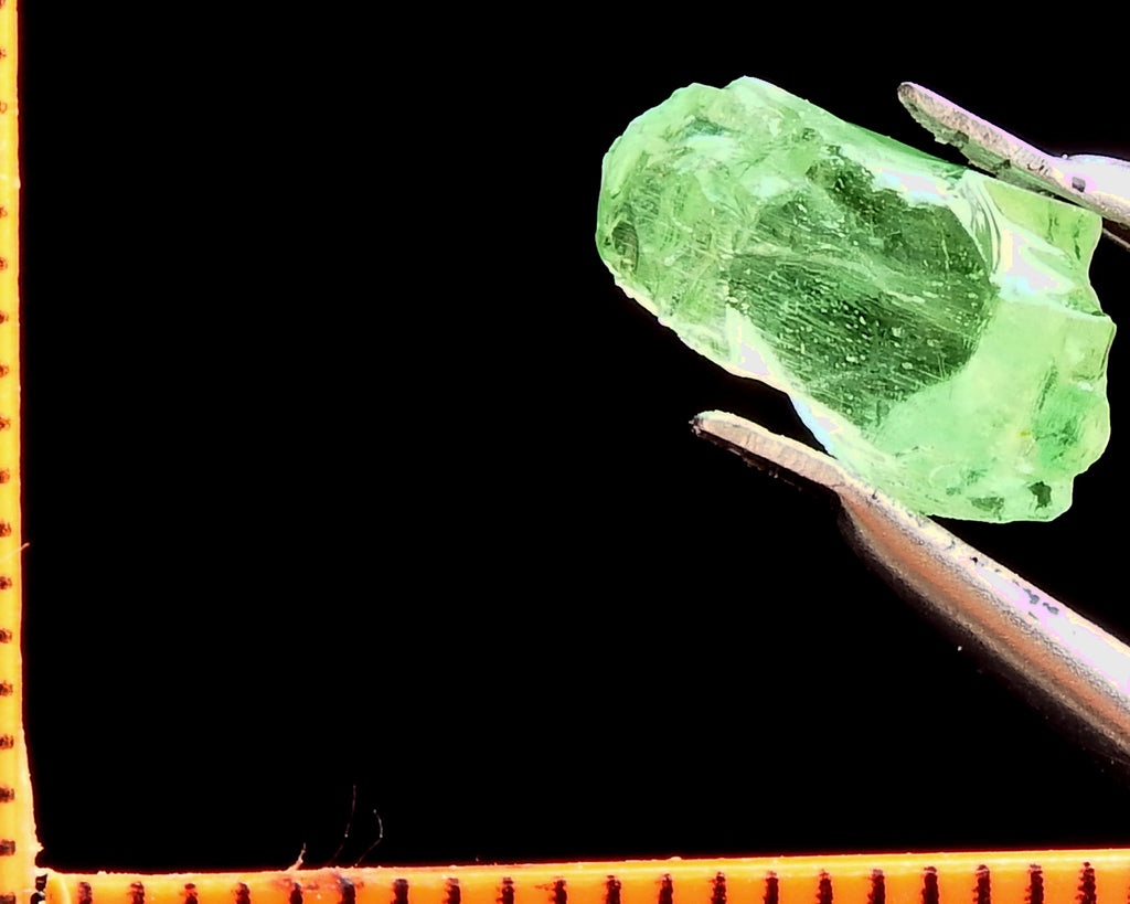 Graded AA+ (the stone may show some veils, bubbles or silk) and weighing 3.63 cts, it can be facetted. This is a very rare magnesium iron aluminium boro-silicate, first found in Greenland in 1884. It is seldom found clean enough to facet.