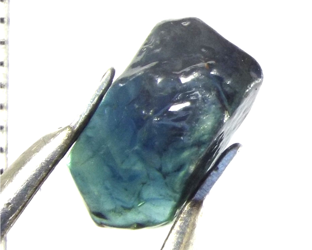 From a new discovery in Nigeria come these Mambilla river-worn stones. The stones show a strong blue colour down the ‘C’ axis and a lighter blue tinged with green down the ‘A’ axes. Some banding is evident in some material. The surface of the stone is quite rough so an accurate grading is not possible. However, I have graded them AA+ to AAA. Unlike many of the Sapphires from the earlier deposits in Mambilla, these stones show a lighter blue colour and very attractive gems can be cut from the rough. Sapphire, being very dichroic, is a difficult stone to photograph so photos have been taken in sunlight with different backgrounds to try to show the colours.