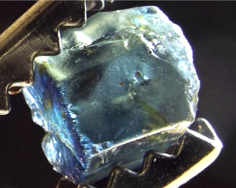 From a new discovery in Nigeria come these Mambilla river-worn stones. The stones show a strong blue colour down the ‘C’ axis and a lighter blue tinged with green down the ‘A’ axes. Some banding is evident in some material. The surface of the stone is quite rough so an accurate grading is not possible. However, I have graded them AA+ to AAA. Unlike many of the Sapphires from the earlier deposits in Mambilla, these stones show a lighter blue colour and very attractive gems can be cut from the rough. Sapphire, being very dichroic, is a difficult stone to photograph so photos have been taken in sunlight with different backgrounds to try to show the colours.