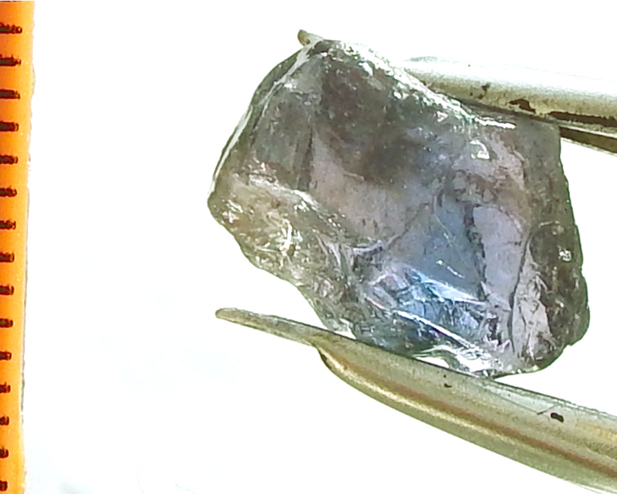 A typical Umba Sapphire from Tanzania. These stones are unique in the range of colours shown, usually in the blue to purple range sometimes pink and green. The Sapphires not only show a strong dichroism - that is, they show two distinct colours - many, but not all, of the Umba Sapphires also show a strong to medium 'colour-change' depending whether they are observed in daylight or incandescent light. It is this phenomena which makes they extremely difficult to photograph as the camera usually shows the color-change in incandescent light.