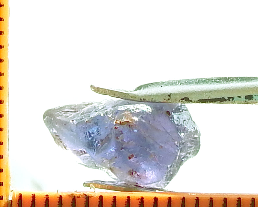 A typical Umba Sapphire from Tanzania. These stones are unique in the range of colours shown, usually in the blue to purple range sometimes pink and green. The Sapphires not only show a strong dichroism - that is, they show two distinct colours - many, but not all, of the Umba Sapphires also show a strong to medium 'colour-change' depending whether they are observed in daylight or incandescent light. It is this phenomena which makes they extremely difficult to photograph as the camera usually shows the color-change in incandescent light.