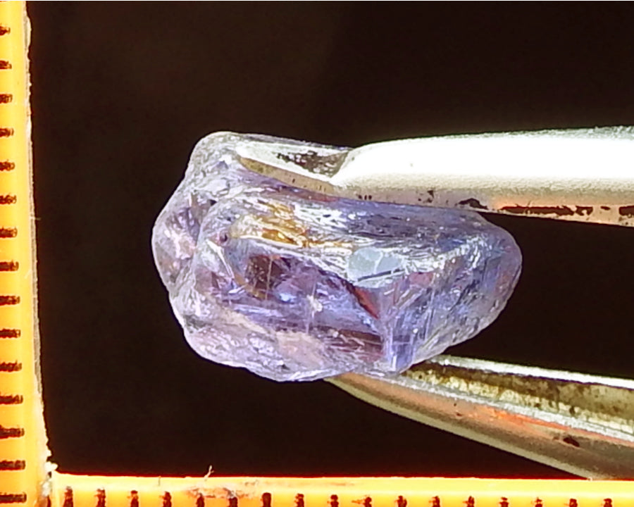 A typical Umba Sapphire from Tanzania. These stones are unique in the range of colours shown, usually in the blue to purple range sometimes pink and green. The Sapphires not only show a strong dichroism - that is, they show two distinct colours - many, but not all, of the Umba Sapphires also show a strong to medium 'colour-change' depending whether they are observed in daylight or incandescent light. It is this phenomena which makes they extremely difficult to photograph as the camera usually shows the color-change in incandescent light.