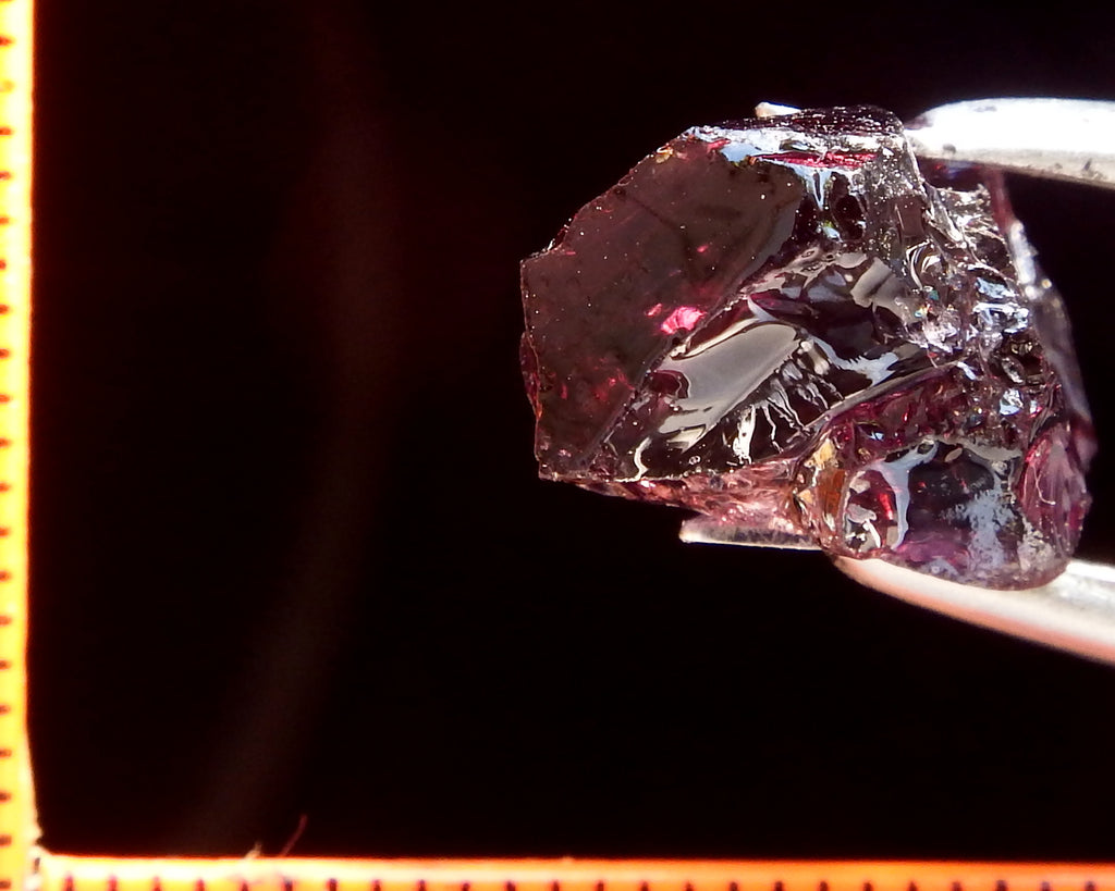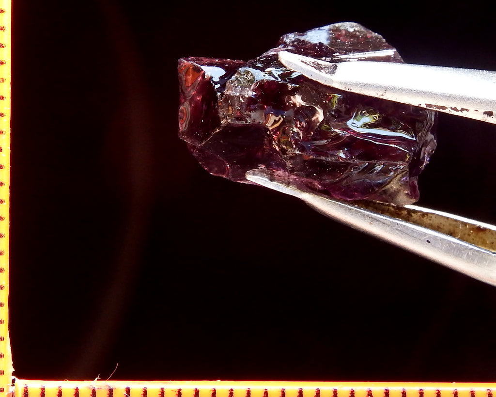 A medium strong purple-lilac Spinel from Tanzania. Graded AAA and weighing 12.88 cts. Priced at just $30.00 per carat, a total of $386.00 Now beat that for value. The scale shown is in millimeters