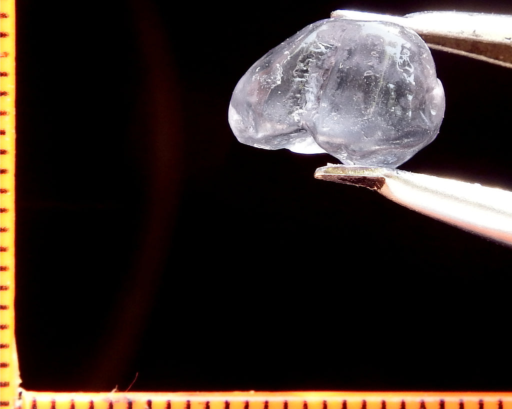 A light blue-lilac Spinel from Tanzania. Graded AAA and weighing 5.80 cts. Priced at just $16.00 per carat, a total of $93.00 Now beat that for value. The scale shown is in millimeters