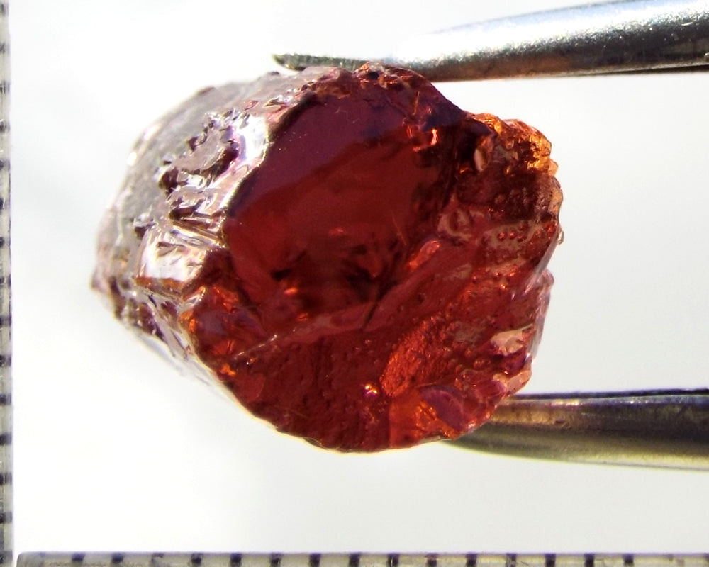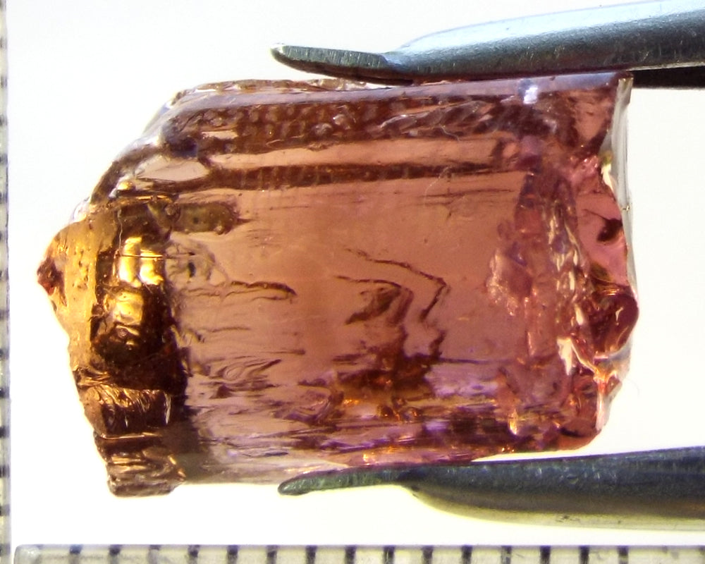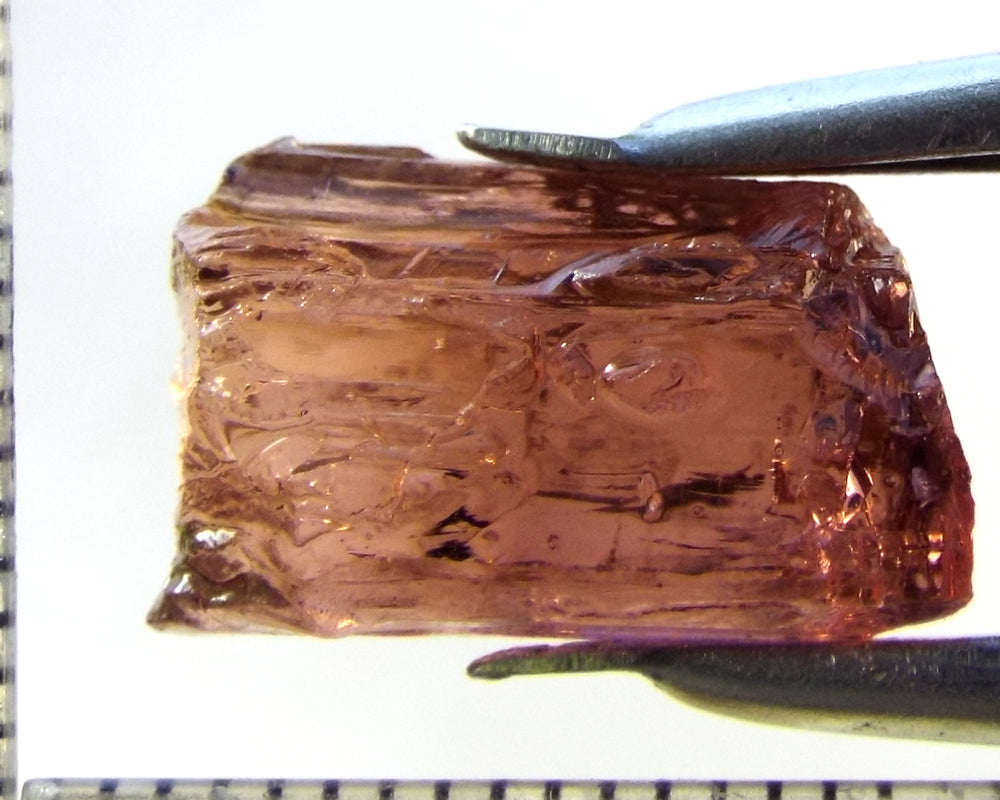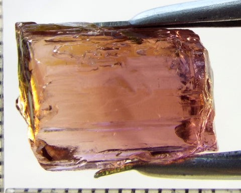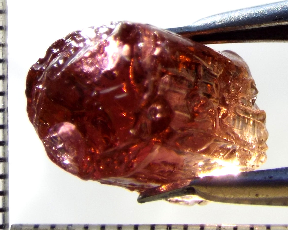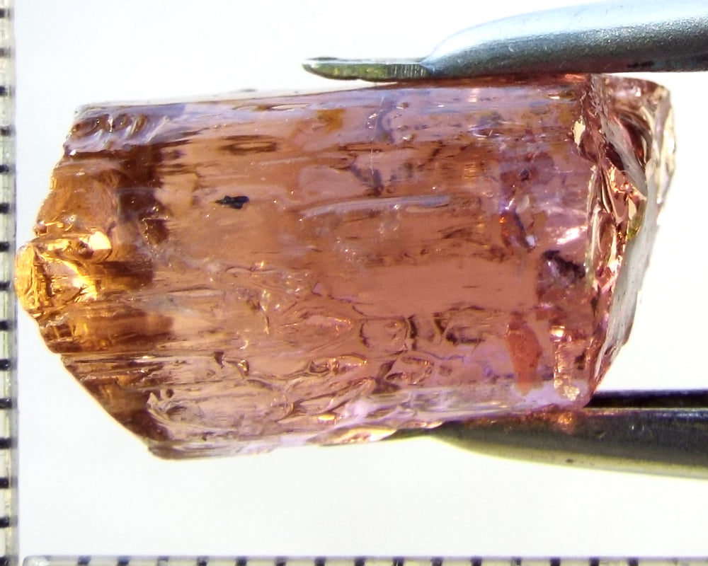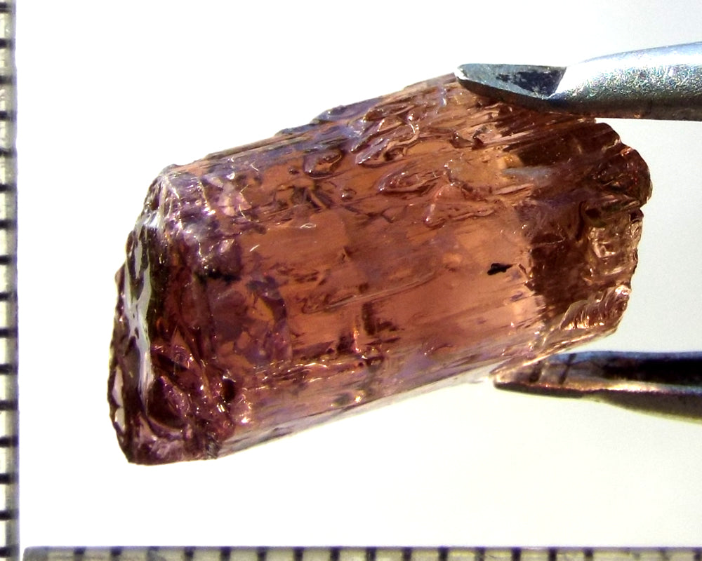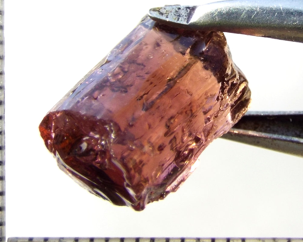 A superb stone from Mozambique showing a slight bi-colour from a medium-strong purple-pink to a lighter pink colour down the length of the crystal, and a stronger purple-pink colour through the "C" axis. The stone, weighing 14.65 cts, is graded AAA.