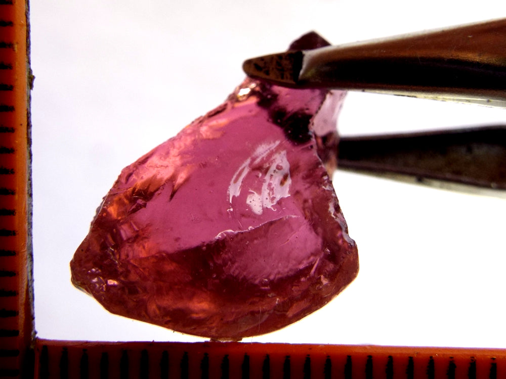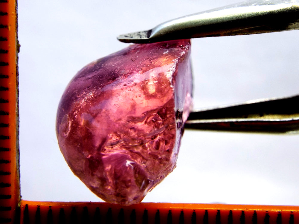 A bright, rich strong pink stone from the Congo, open 'C' axis. the stone has an excellent shape for cutting a pendant.