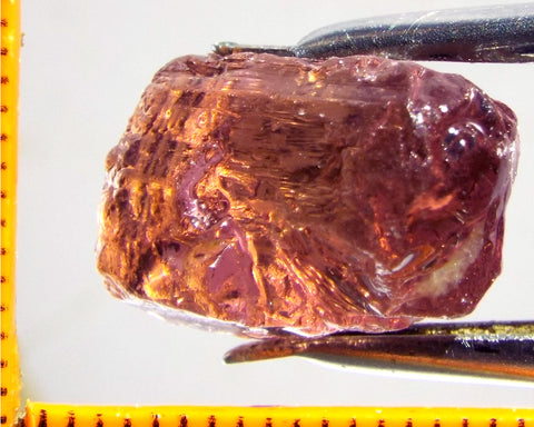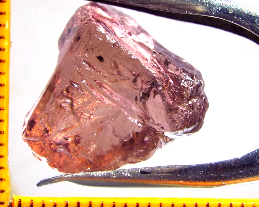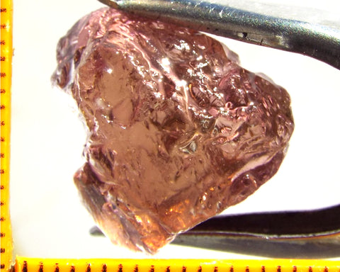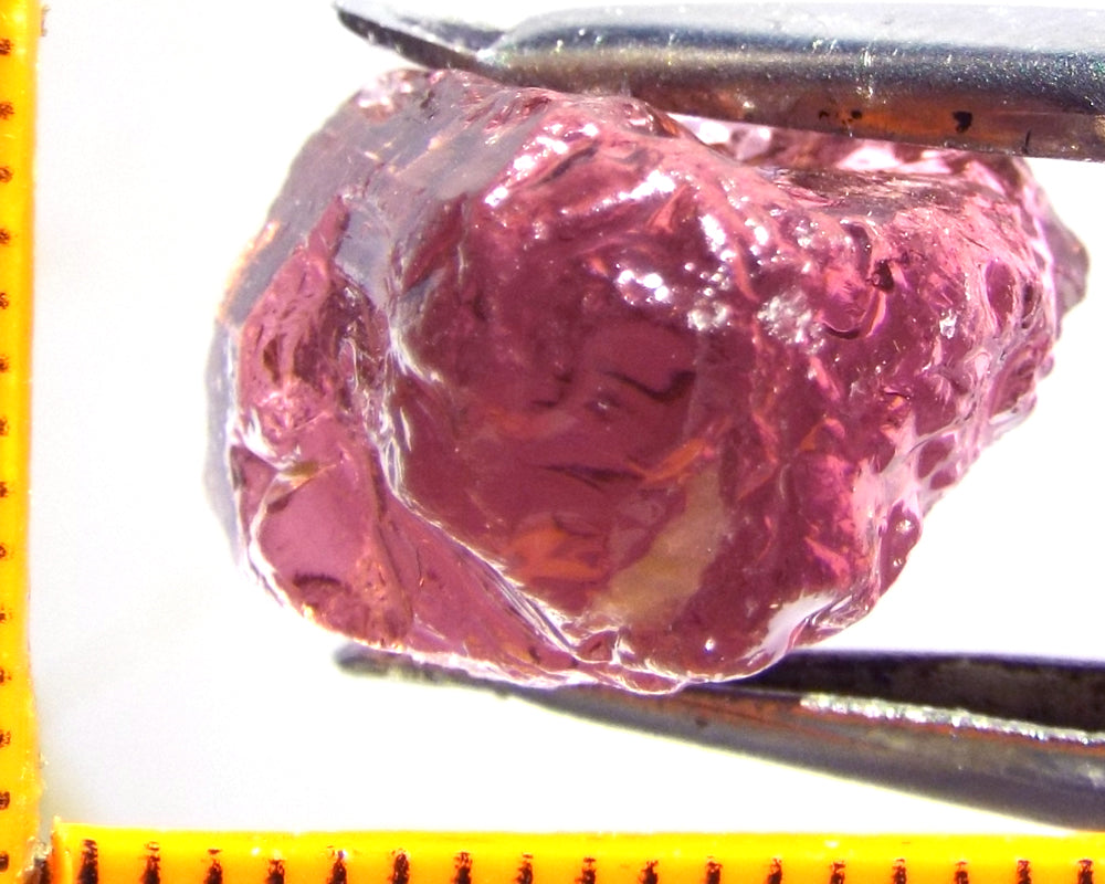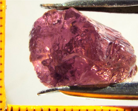A bright, strong pink-purple stone from the Congo, showing an open 'C' axis.