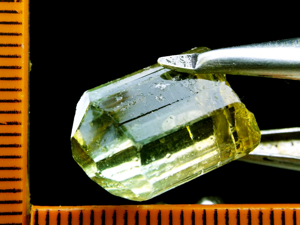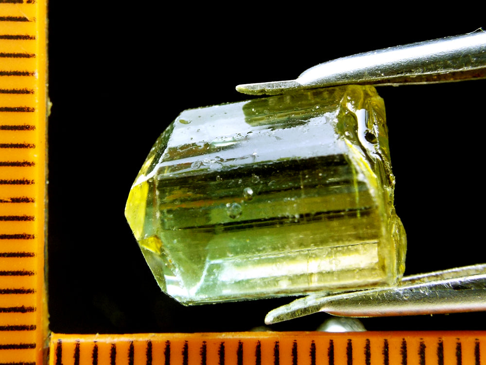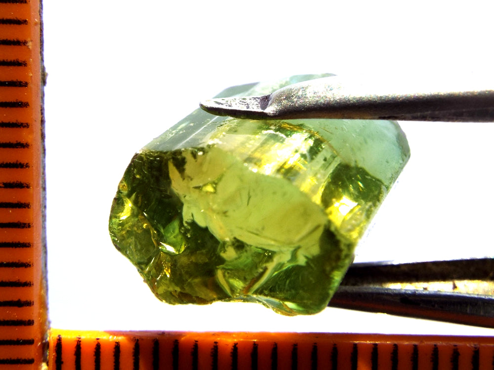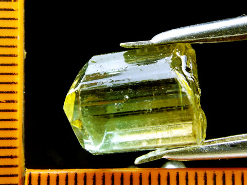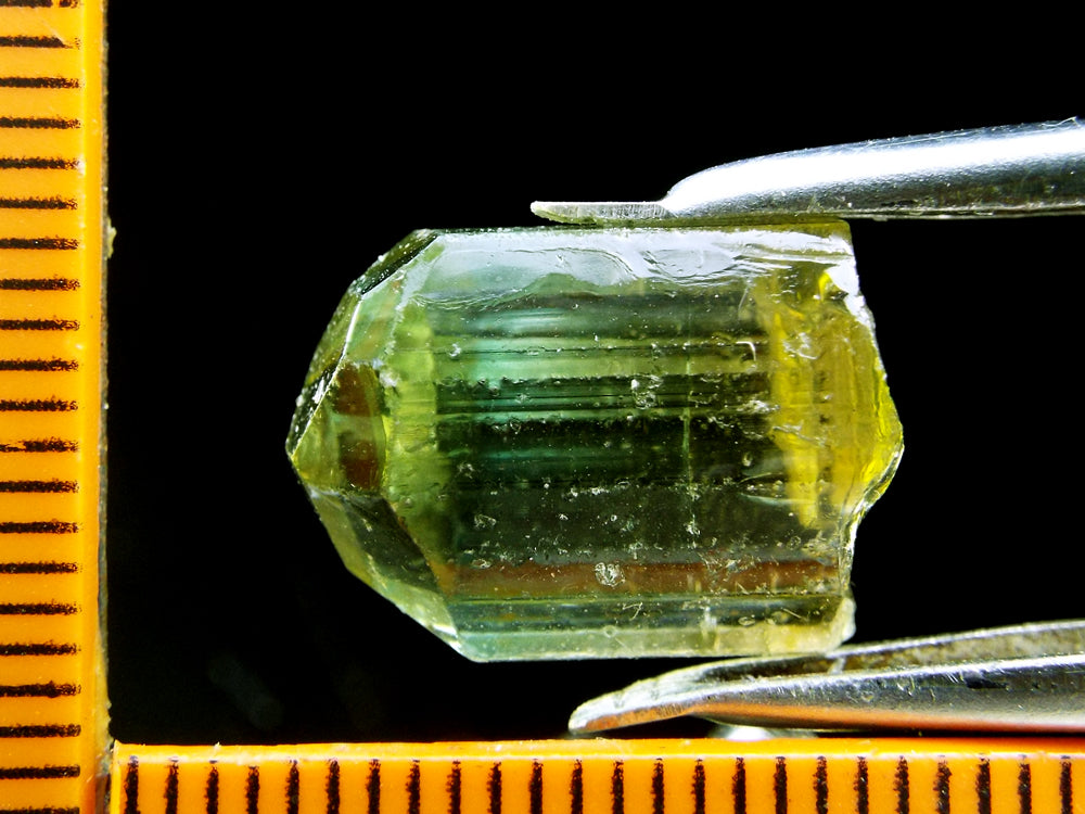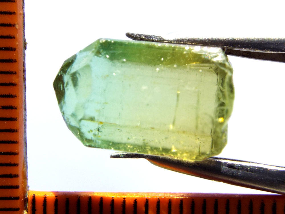 A superb, bright medium-light green to yellow-brown, terminated bicolour from the Congo showing an open 'C' axis.