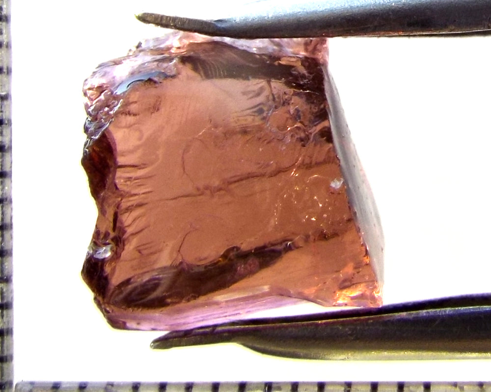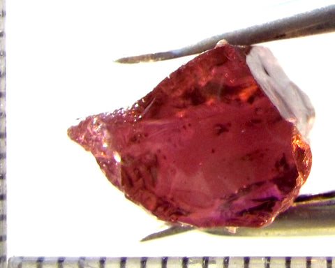 A  bright strong purple-pink stone from Mozambique, showing a deeper purple-pink 'C' axis.