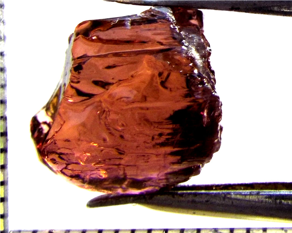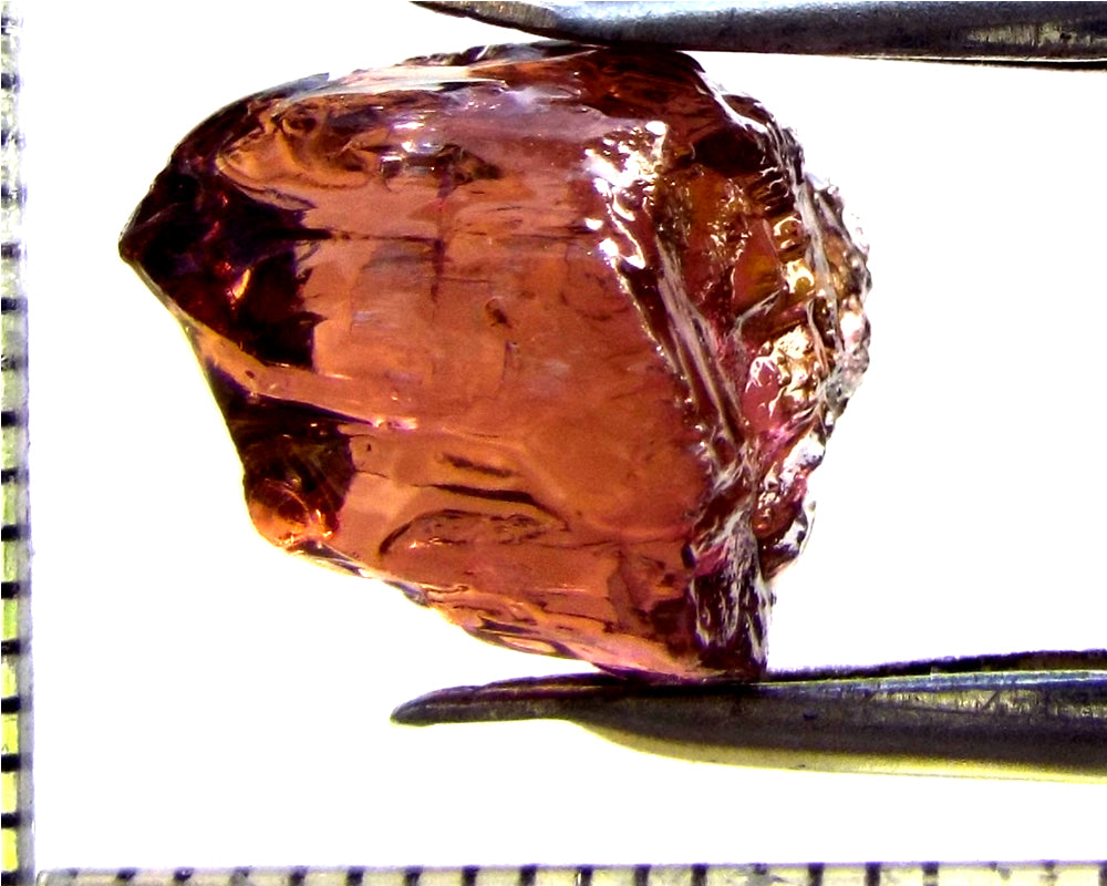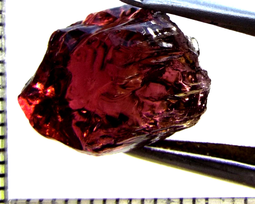 Tourmaline – Mozambique – 11.58 cts - Ref. TOB-668 A bright strong purple-pink stone from Mozambique, showing a deeper purple-pink 'C' axis. Graded AAA and weighing 11.58 cts. Priced at just $12.00 per carat, a total of $139.00 The scale shown is in millimetres Now beat that for value!