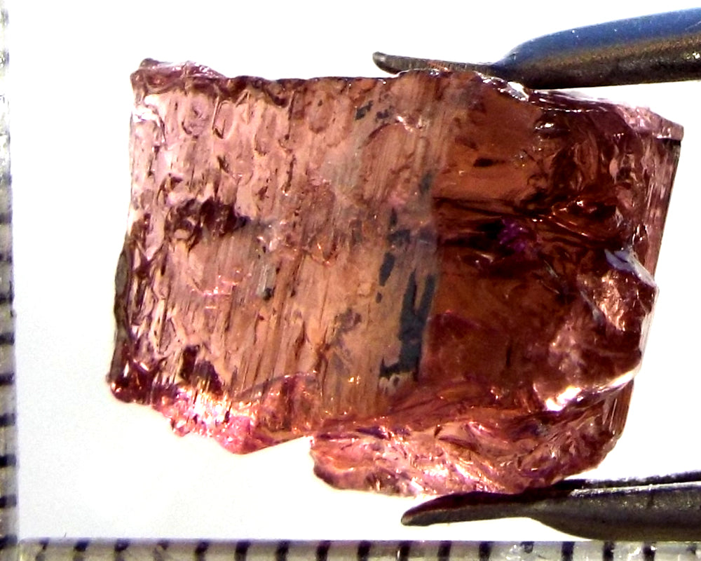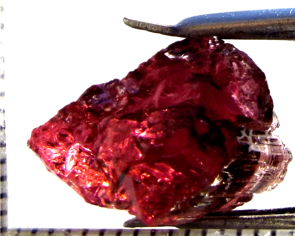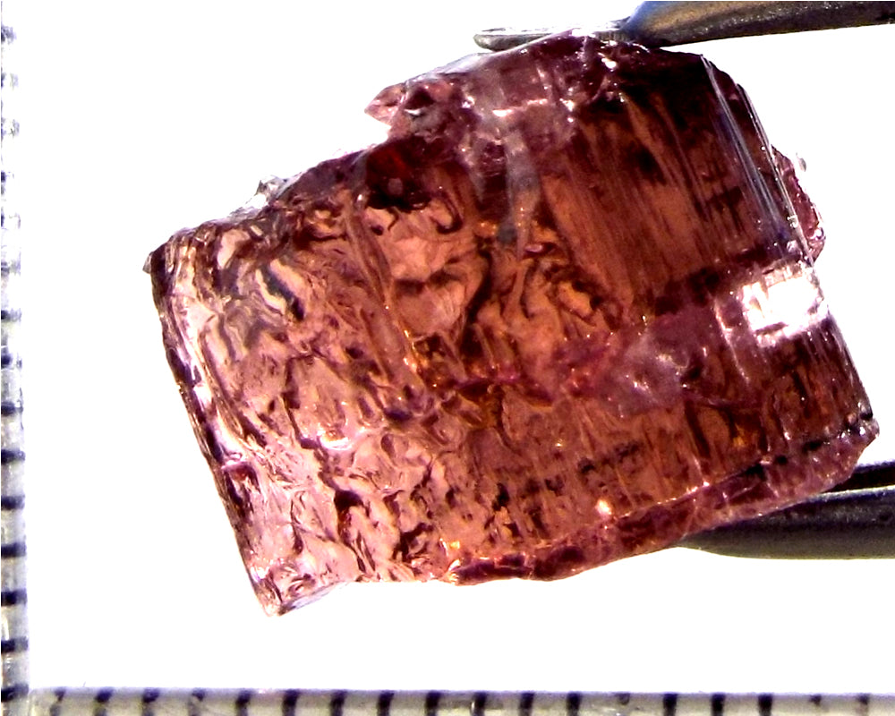 A  bright medium purple-pink stone from Mozambique, showing a deeper purple-pink 'C' axis.
