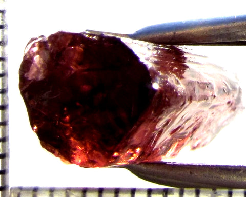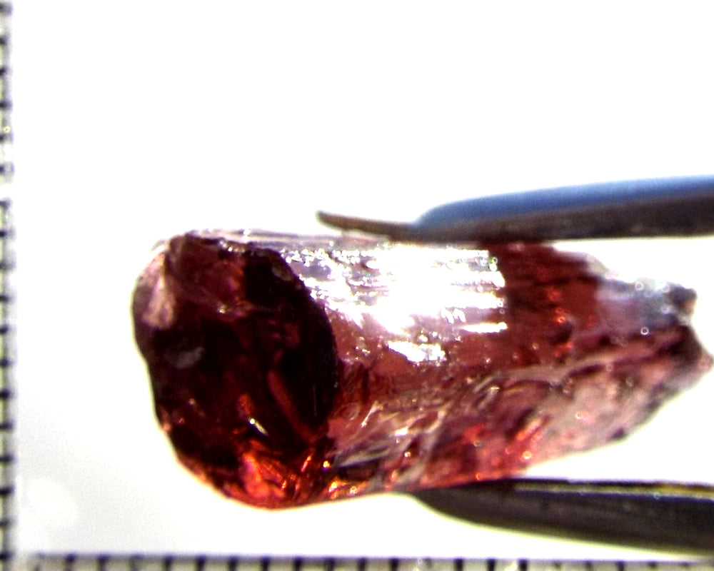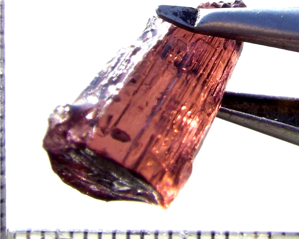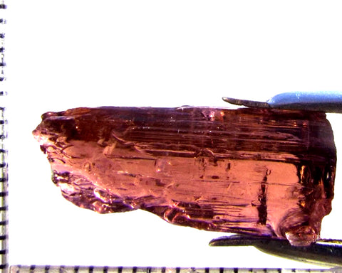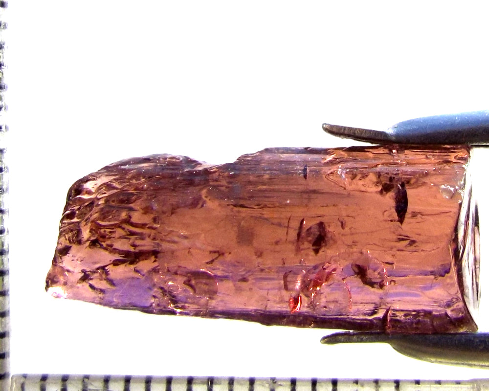 A  bright, medium-strong, pink-purple stone from Mozambique, showing a darker pink 'C' axis.