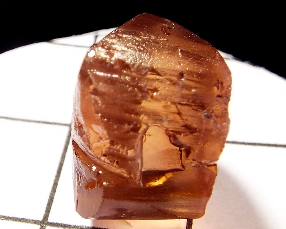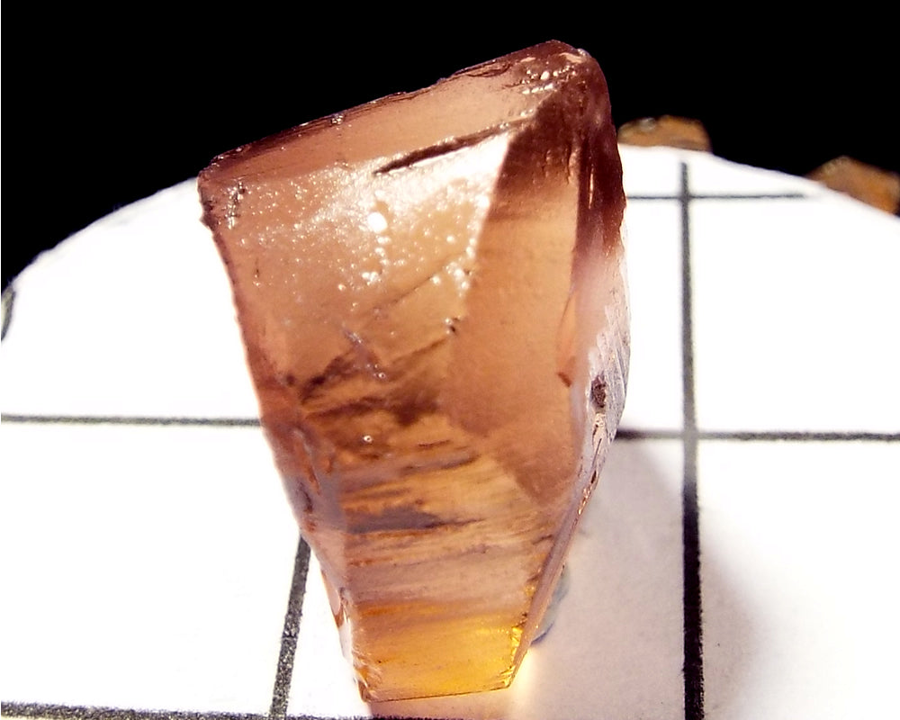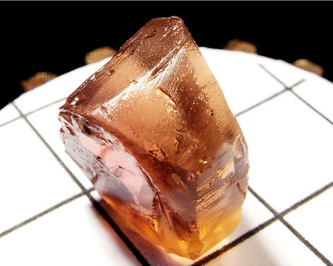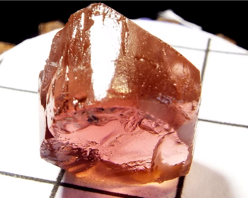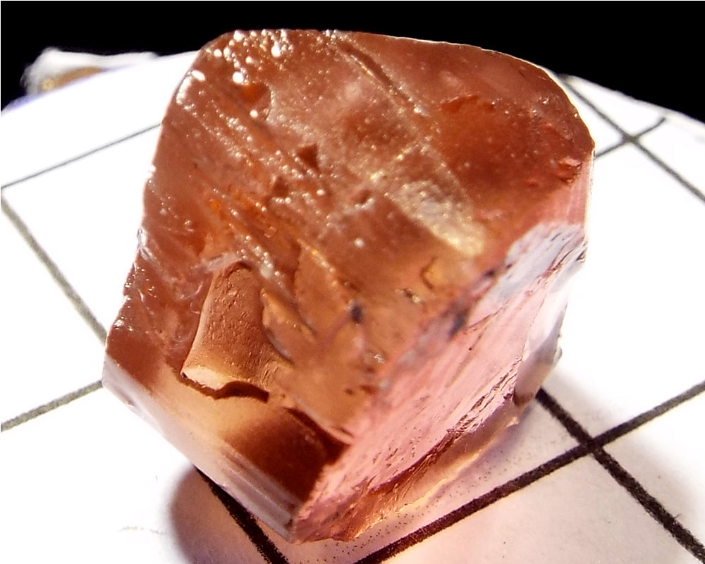 A bright medium pink-orange stone from Mozambique, showing a darker pink 'C' axis.