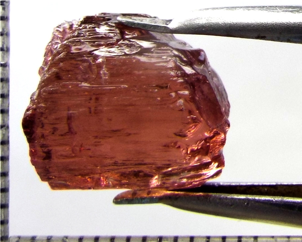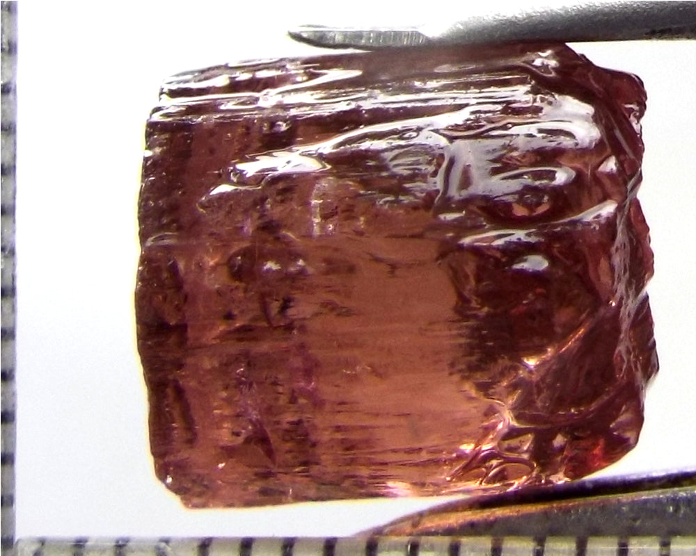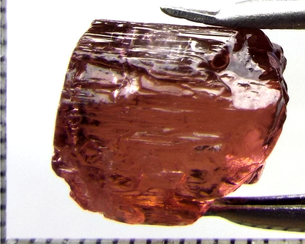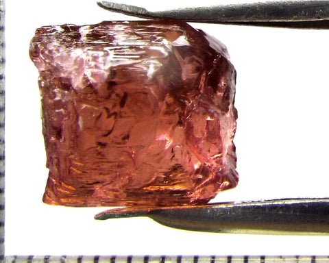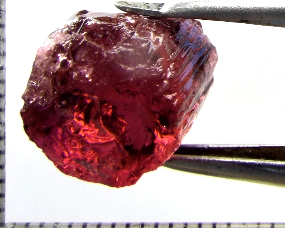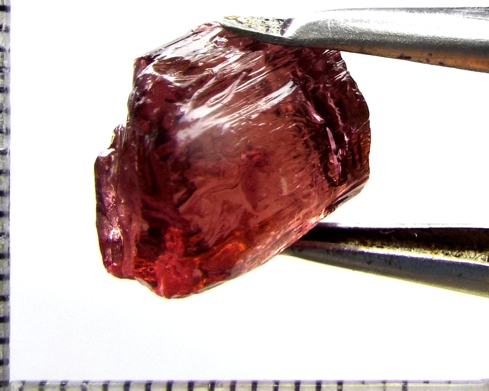 A  bright strong purple-pink stone from Mozambique, showing a deeper purple-pink 'C' axis.