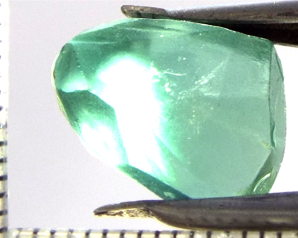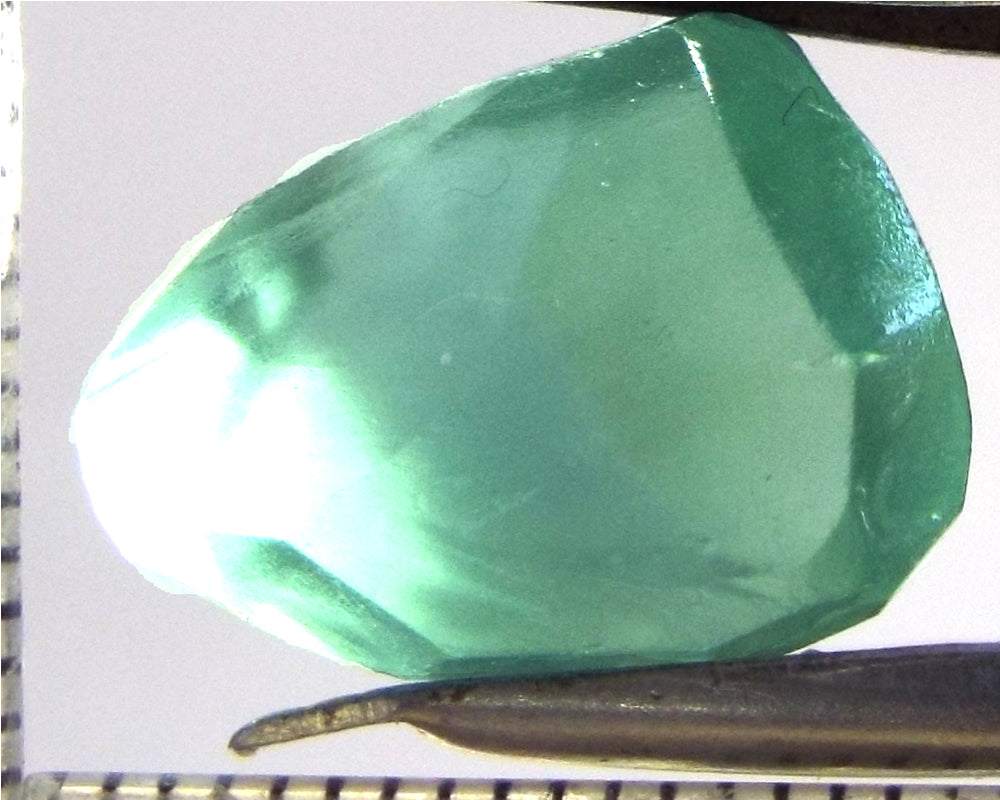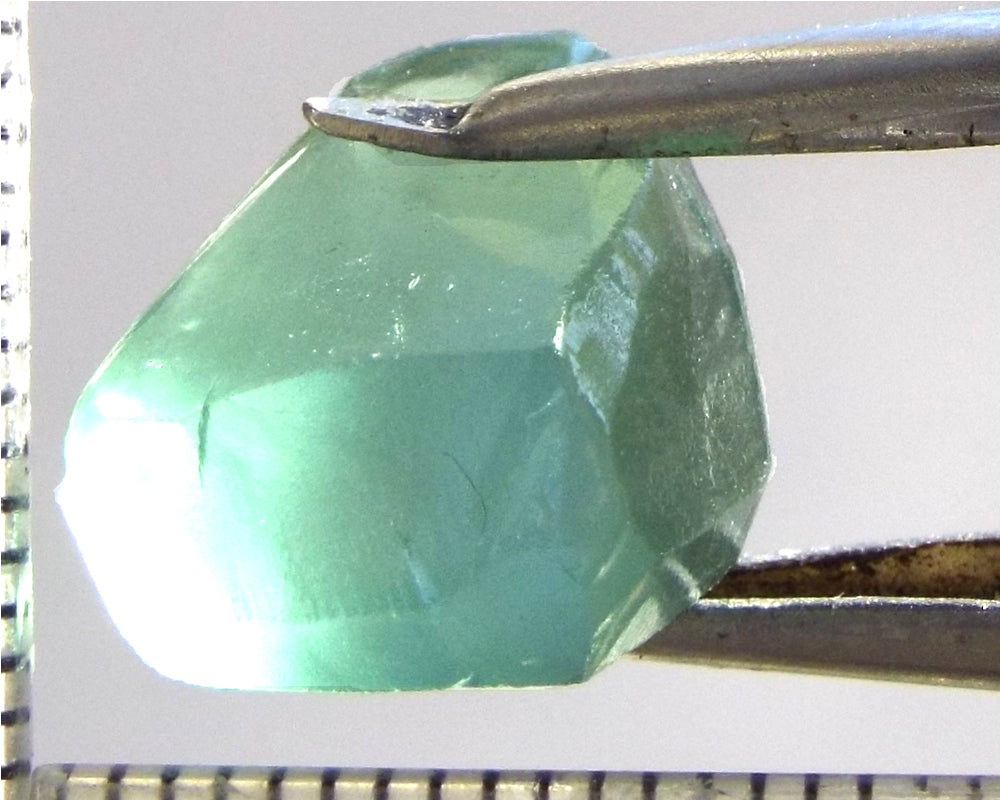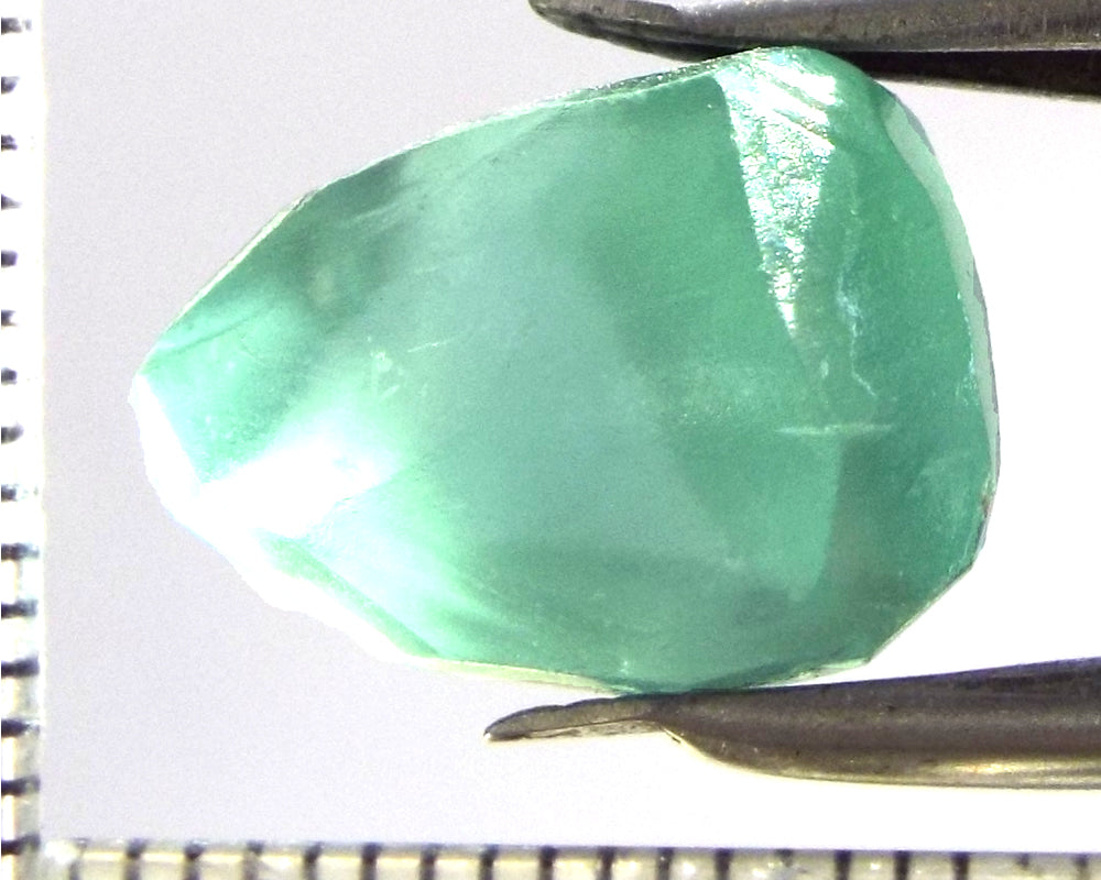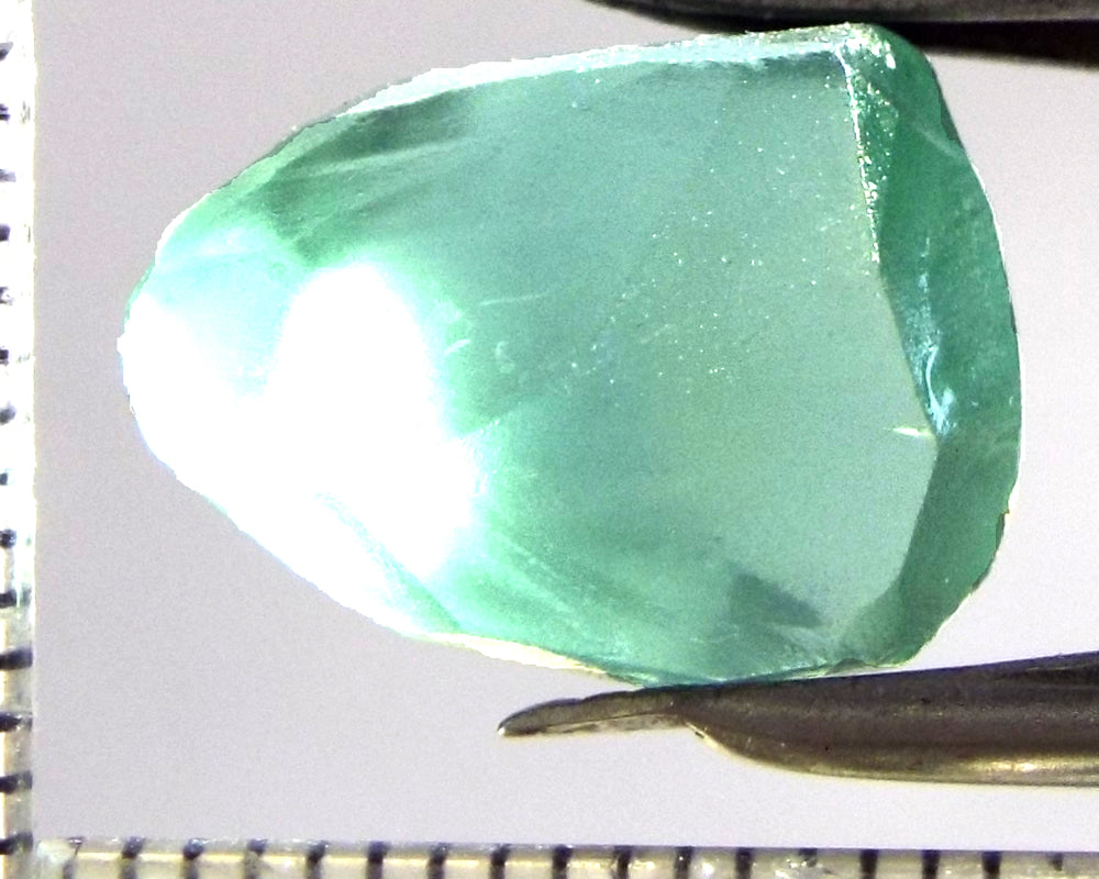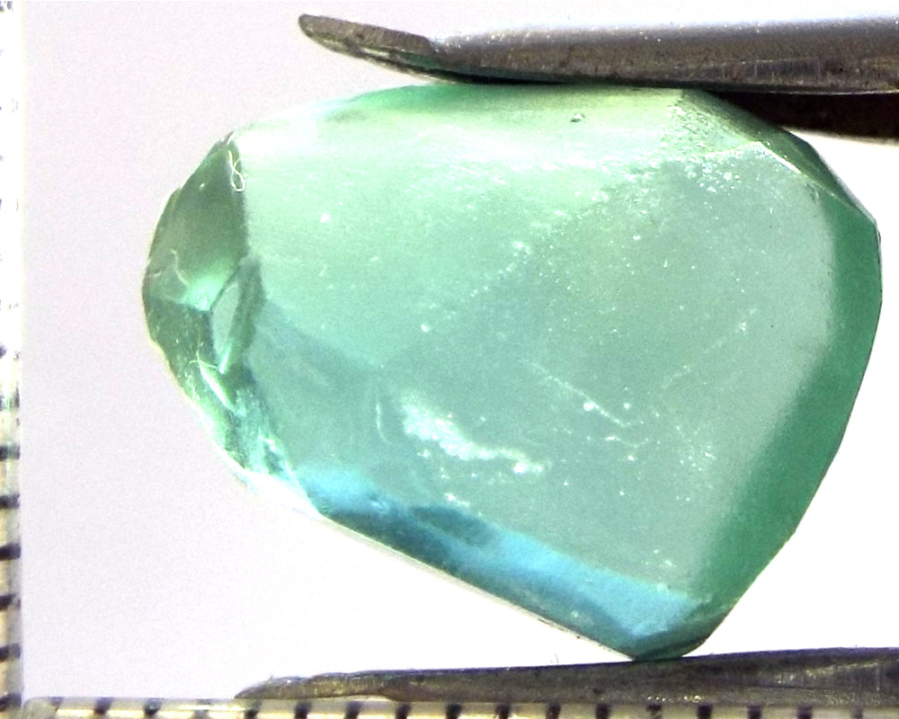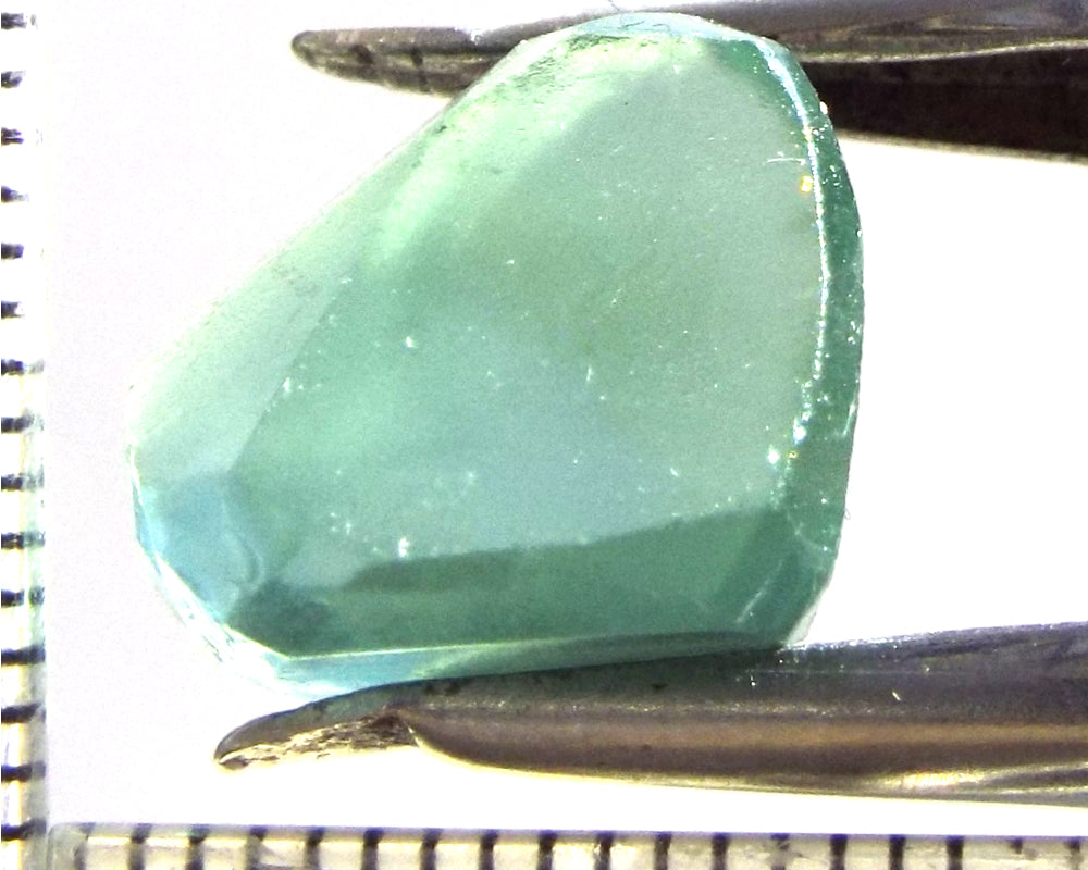 A bright medium-light blue-green stone from Mozambique, showing a slightly darker 'C' axis. This is a rare and usual colour in Mozambique Tourmaline and the first we have seen.