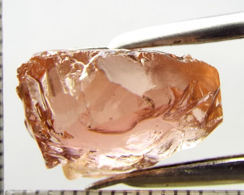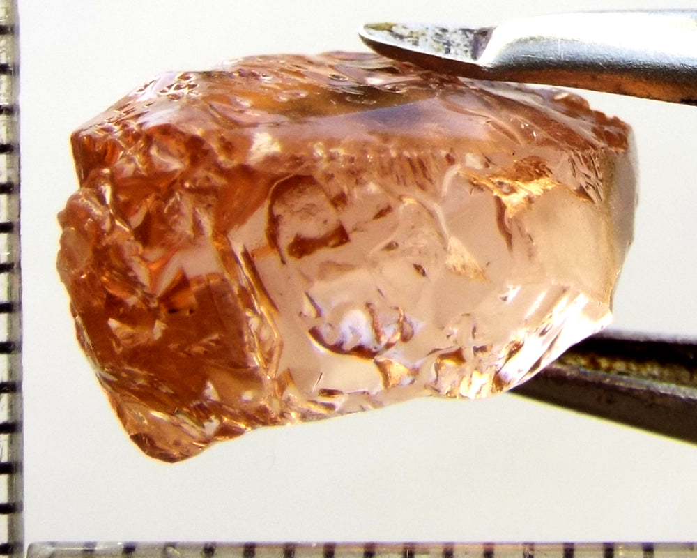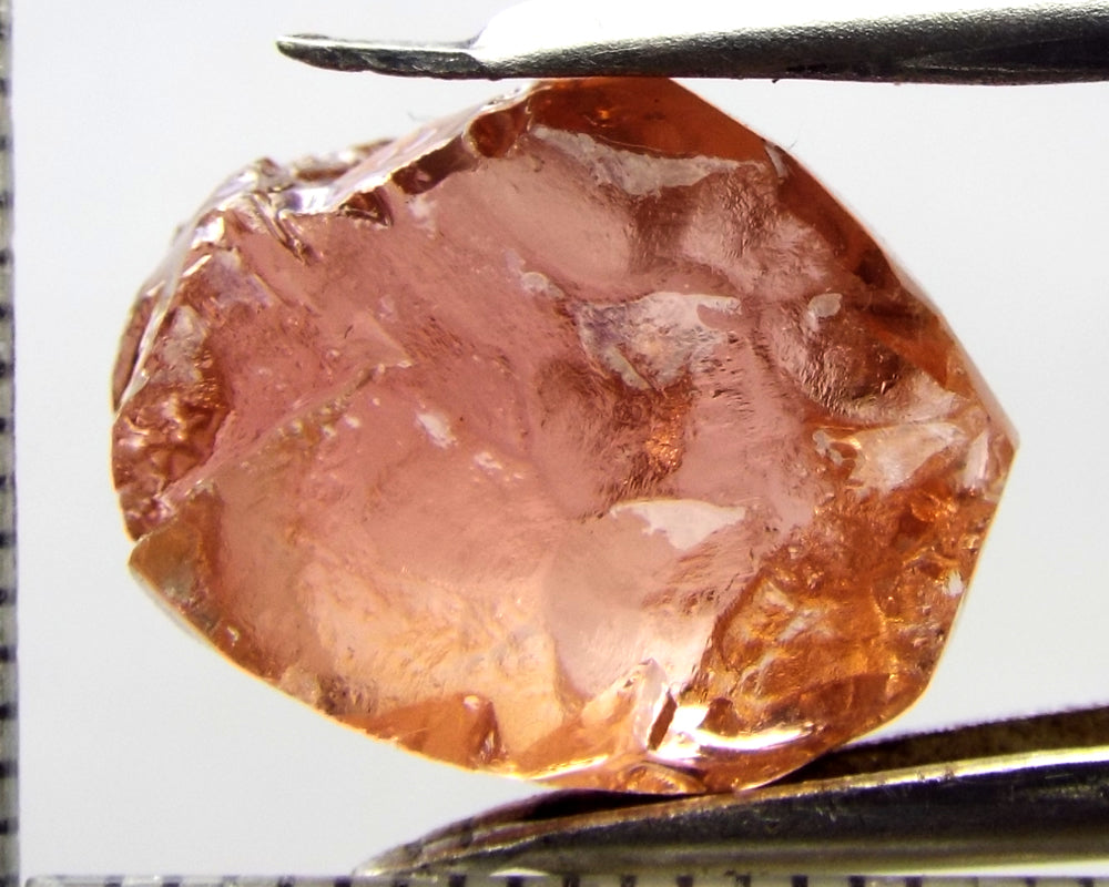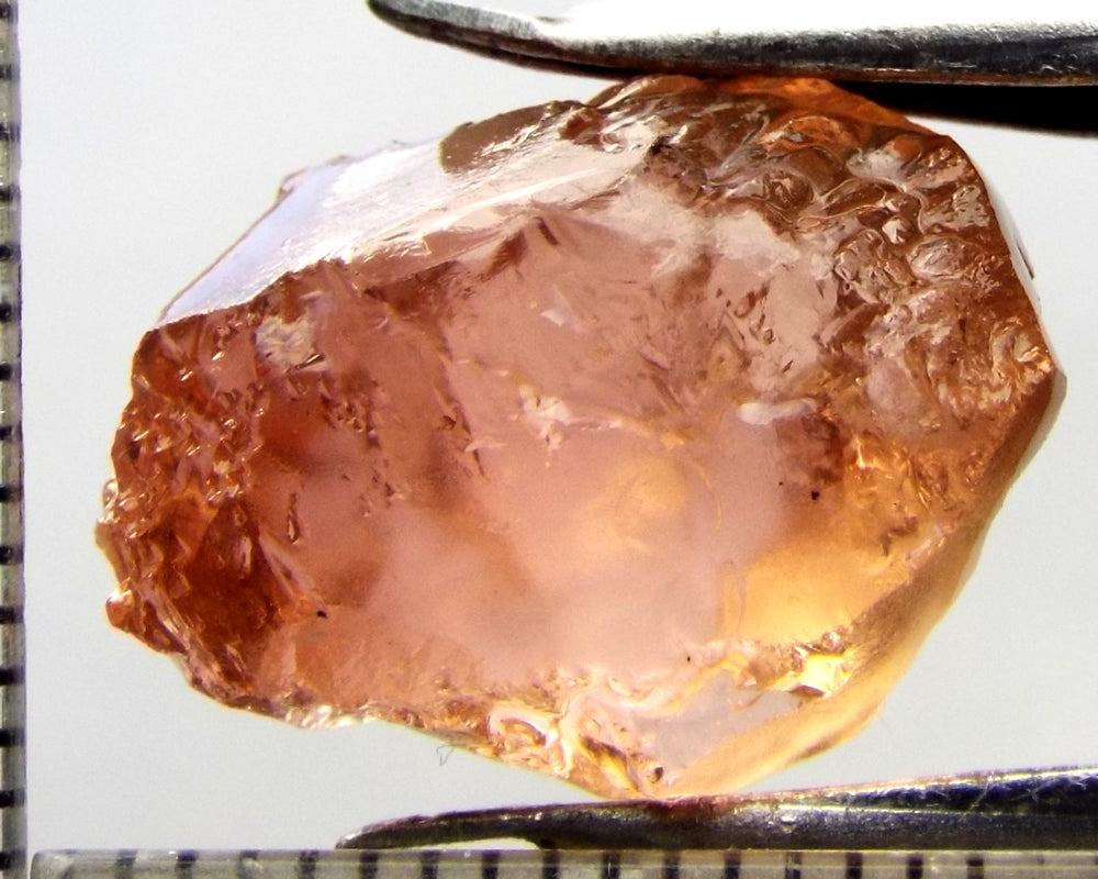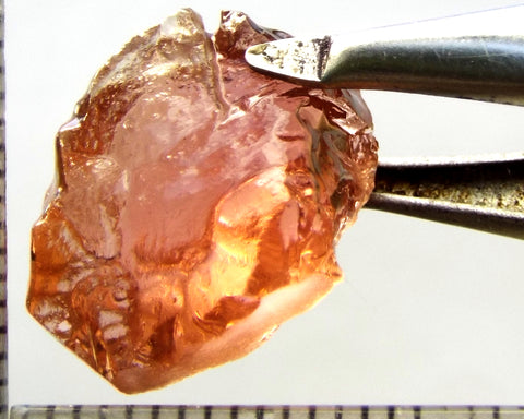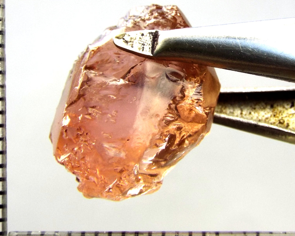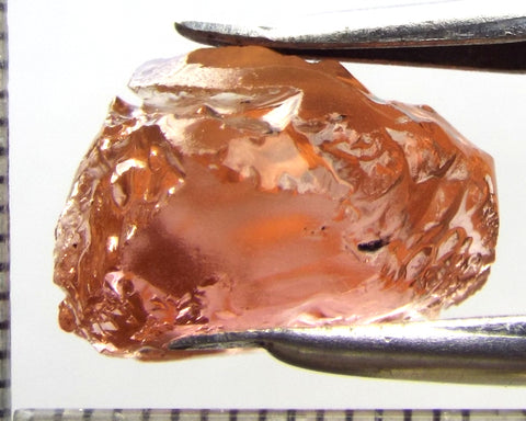 A bright medium orange-pink stone from Mozambique, showing a deeper colour through the 'C' axes.