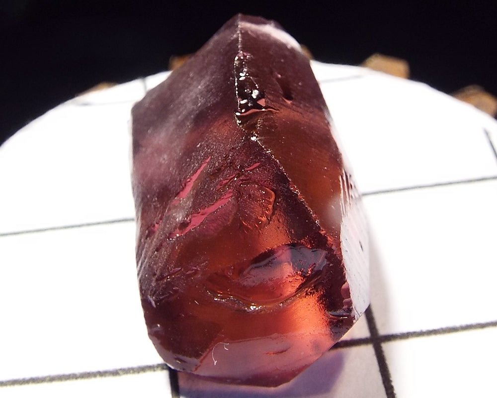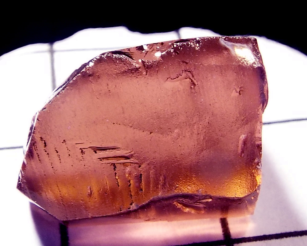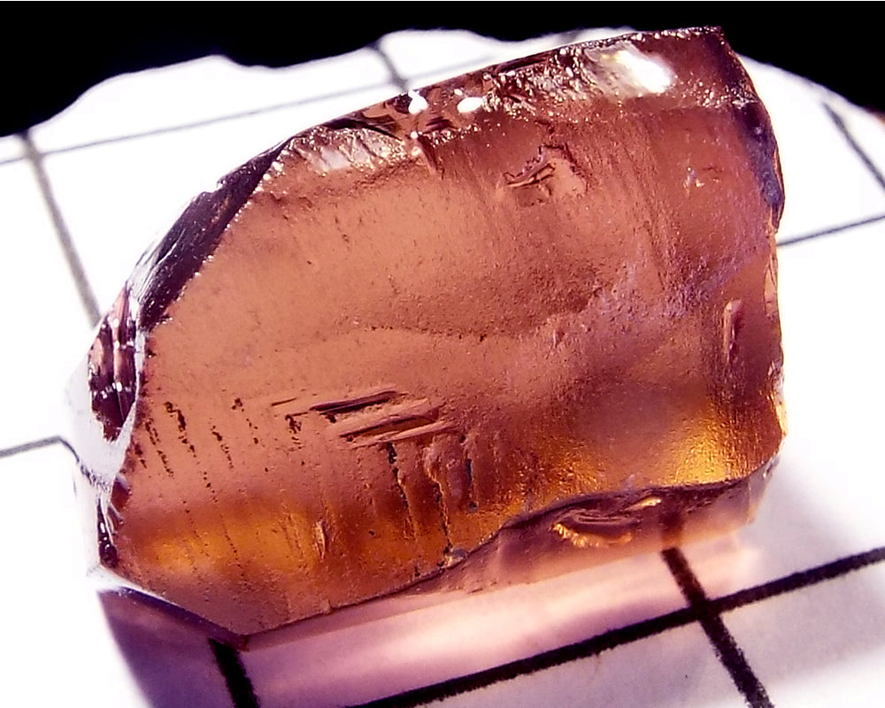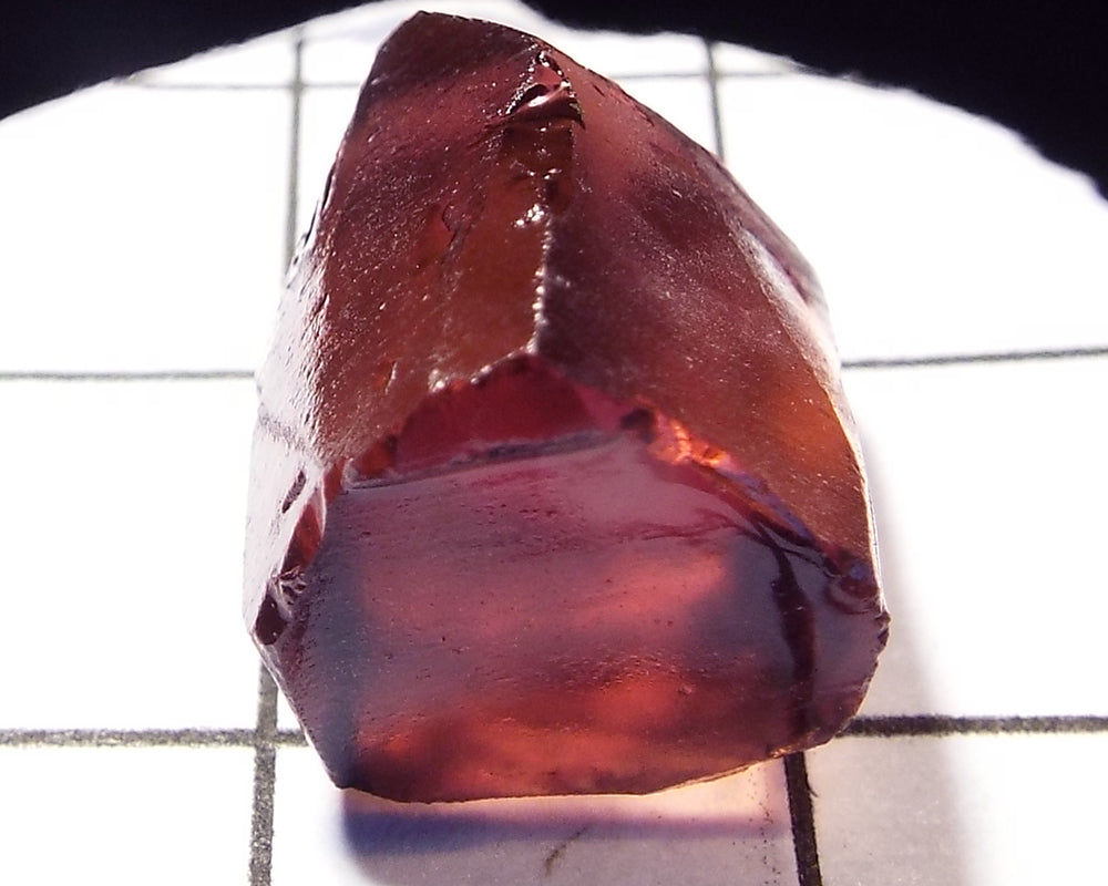 A bright medium-strong pink-purple stone from Mozambique, showing a darker pink 'C' axis.