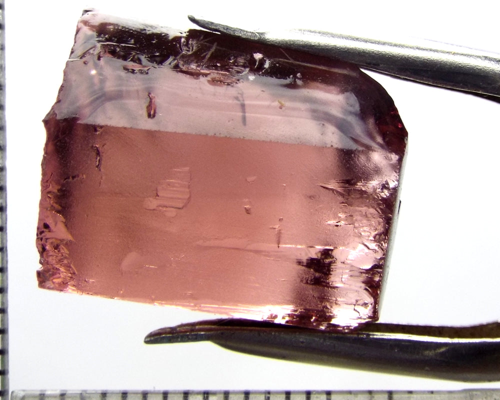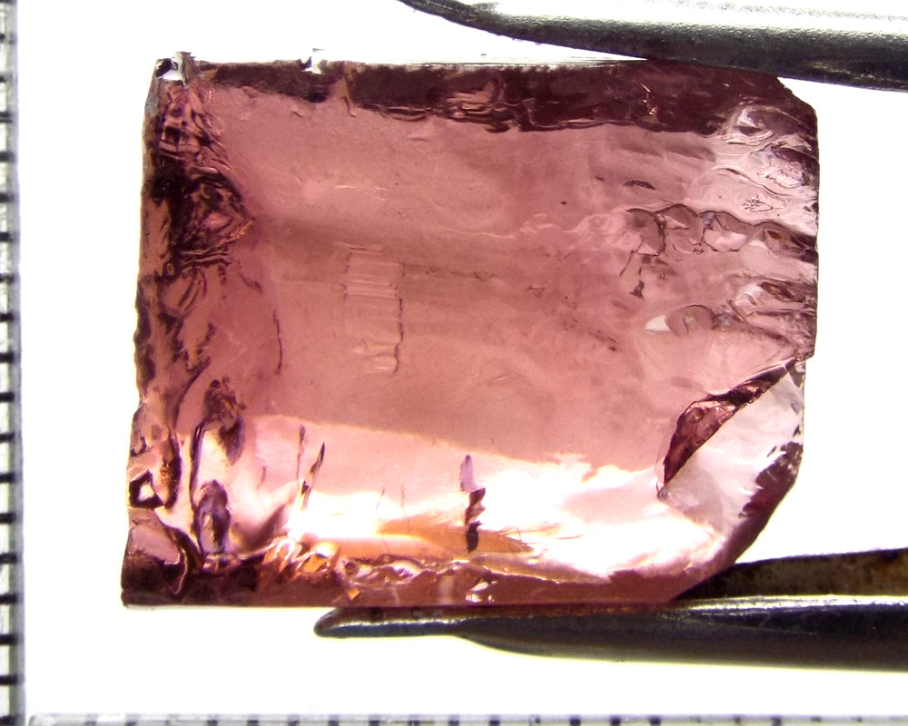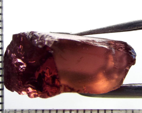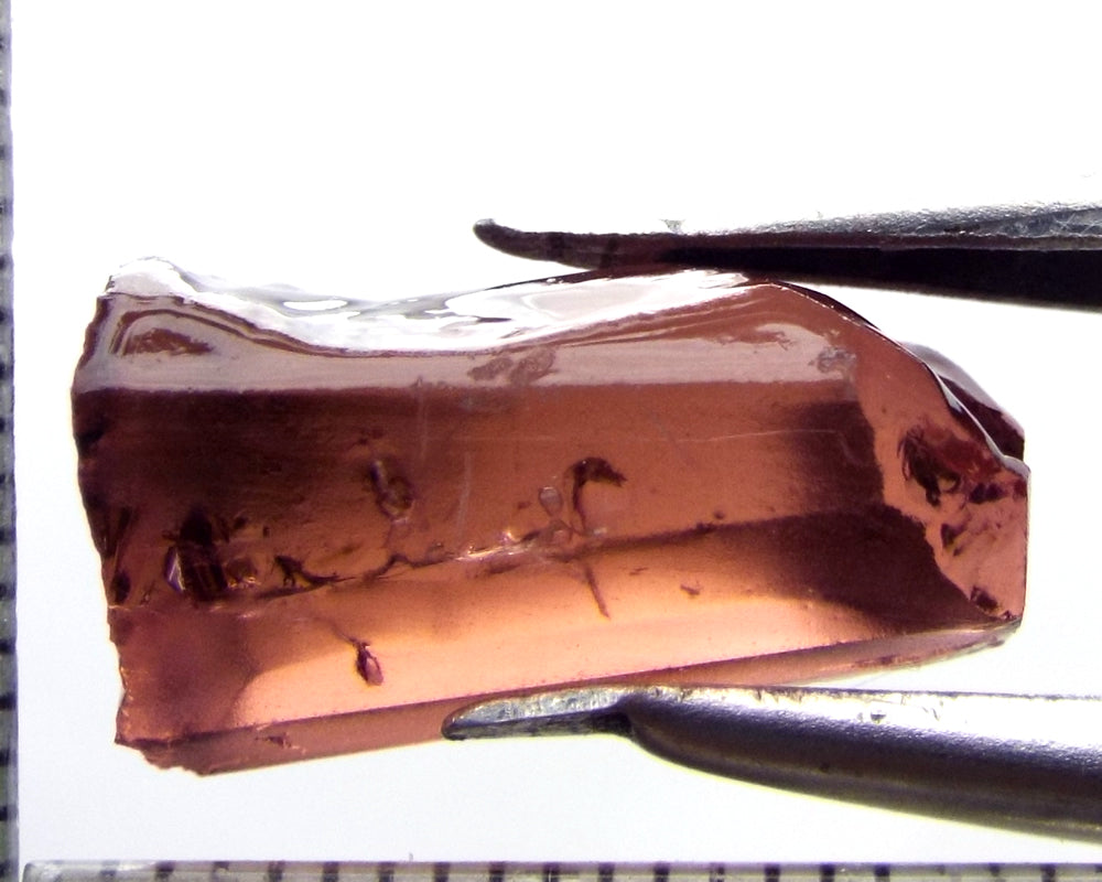 A bright strong purple-pink stone from Mozambique, showing a deeper purple-pink 'C' axis. Take note, the stone is slightly 'flat', 8 mm thick, hence the lesser price