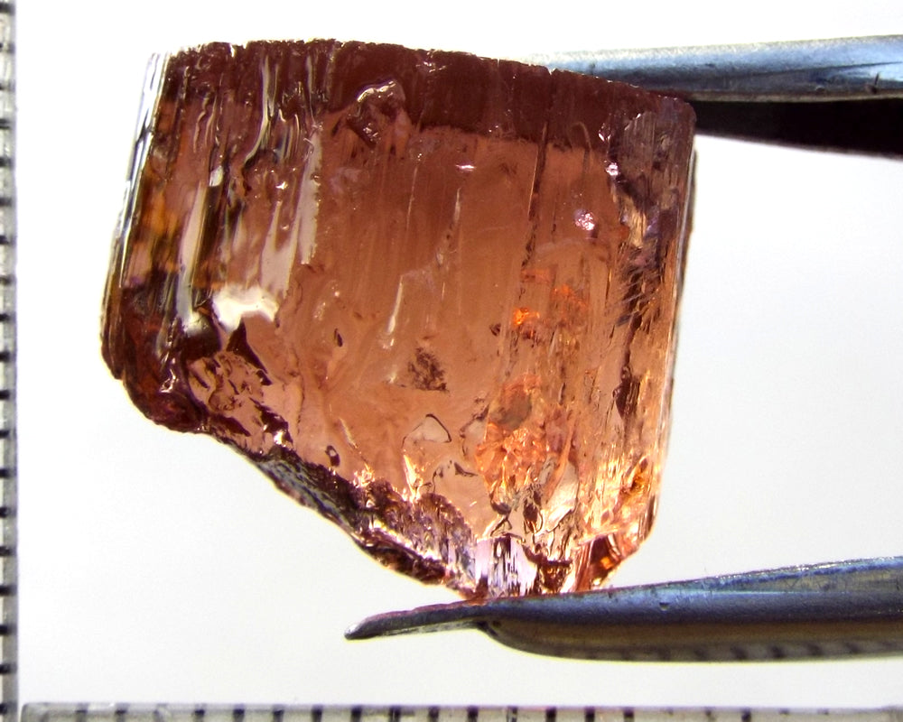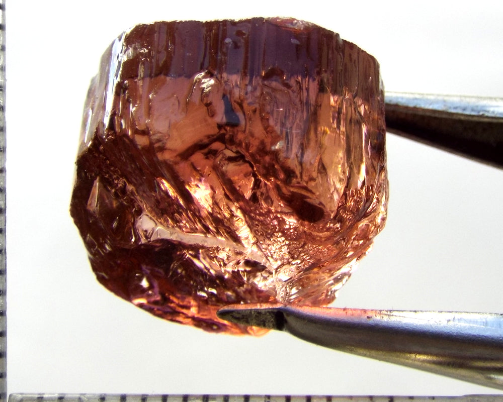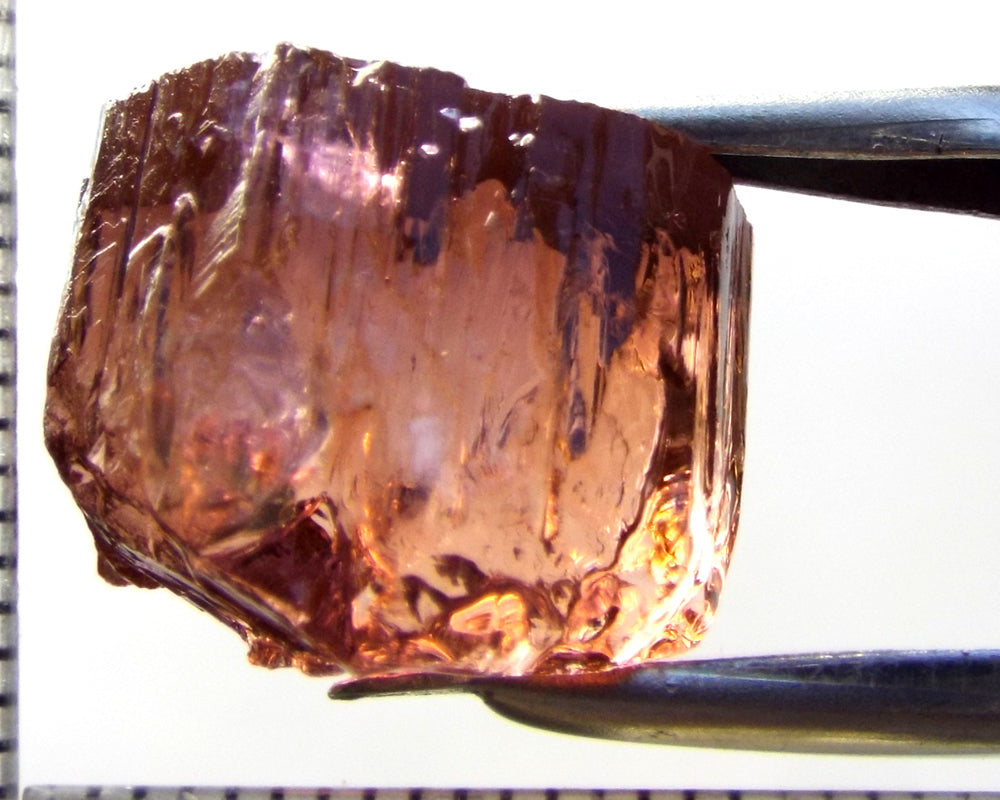 Tourmaline – Mozambique – 29.13 cts - Ref. TOB-596 Another superb medium pink stone from Mozambique, showing a deeper pink 'C' axis. Graded AAA and weighing 29.13cts. Priced at just $28.00 per carat, a total of $816.00 The scale shown is in millimetres Now beat that for value!