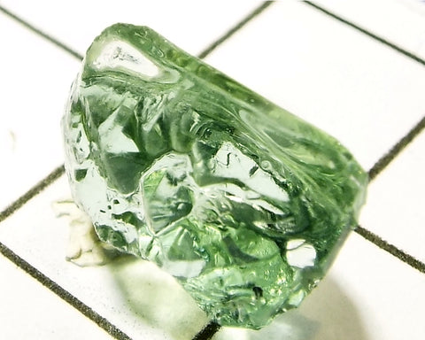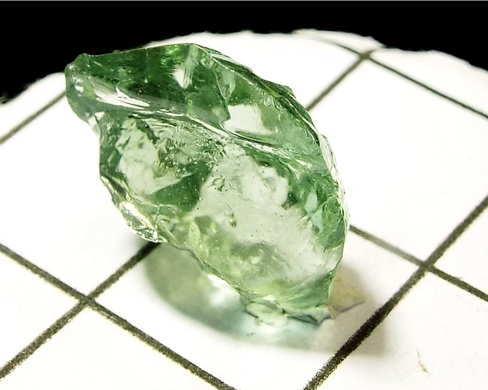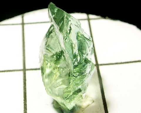 A bright medium-light mint slightly yellow-green stone from Mozambique, showing a deeper coloured 'C' axis.