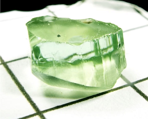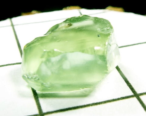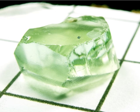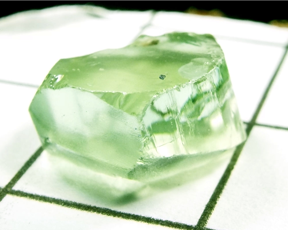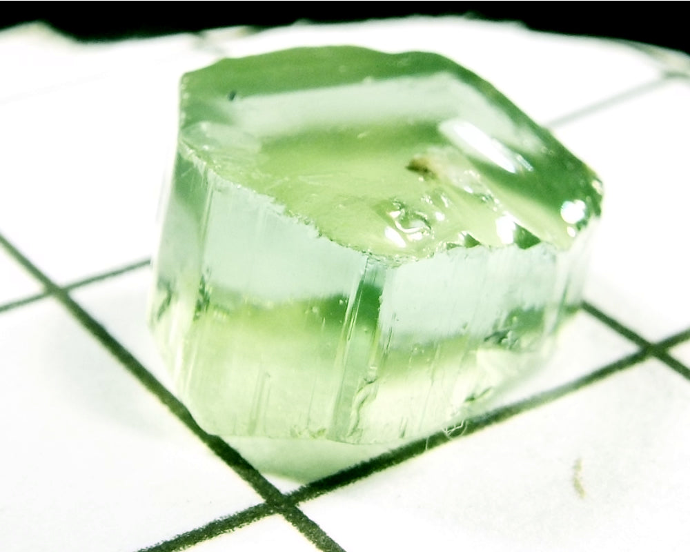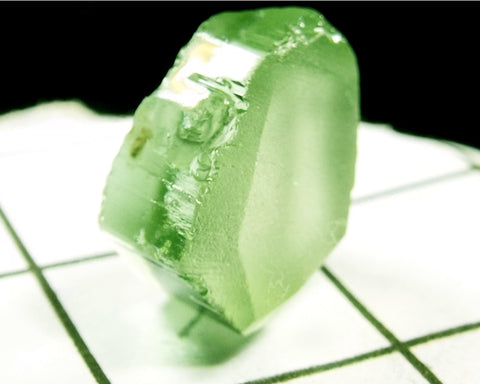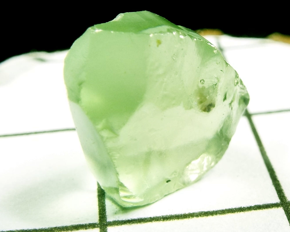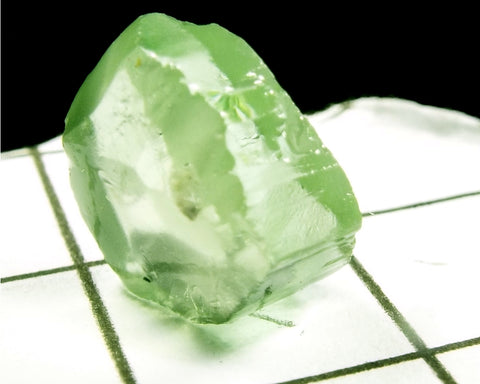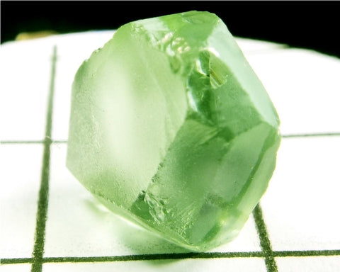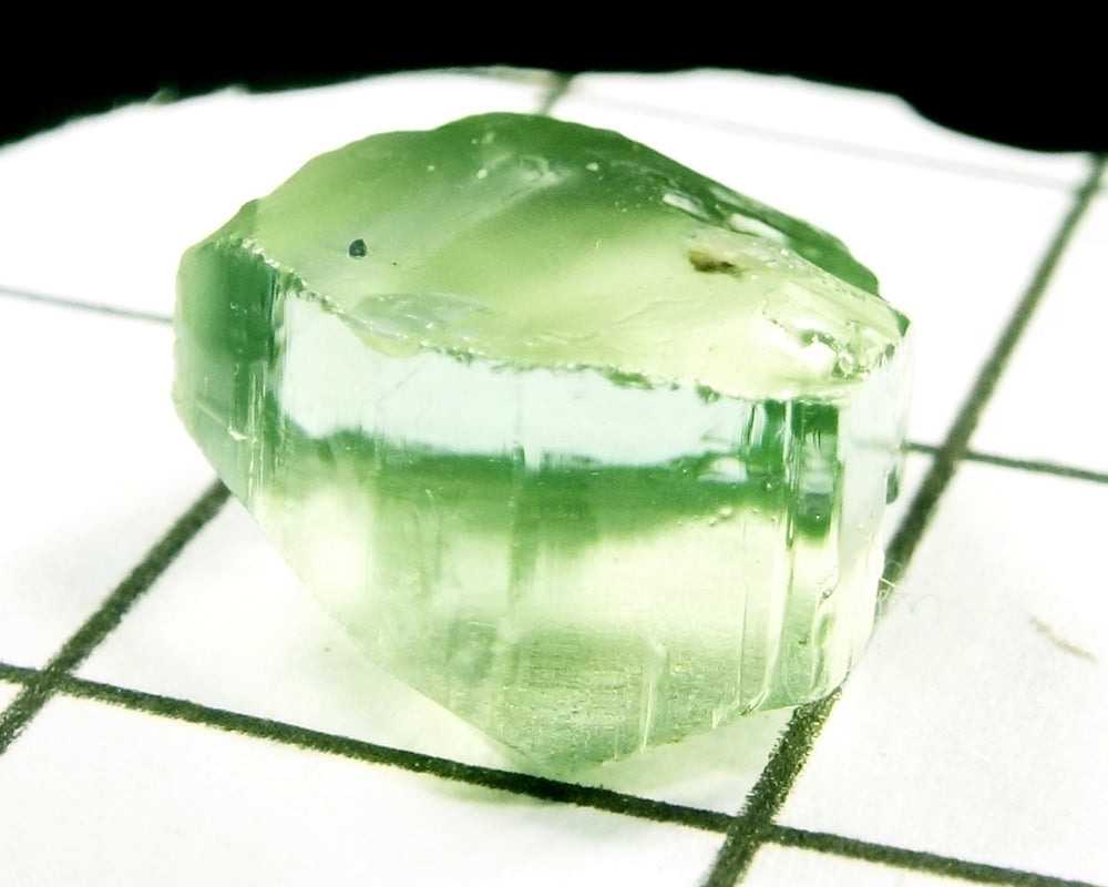 A  bright medium-light mint slightly yellow-green stone from Mozambique, showing a deeper coloured 'C' axis.