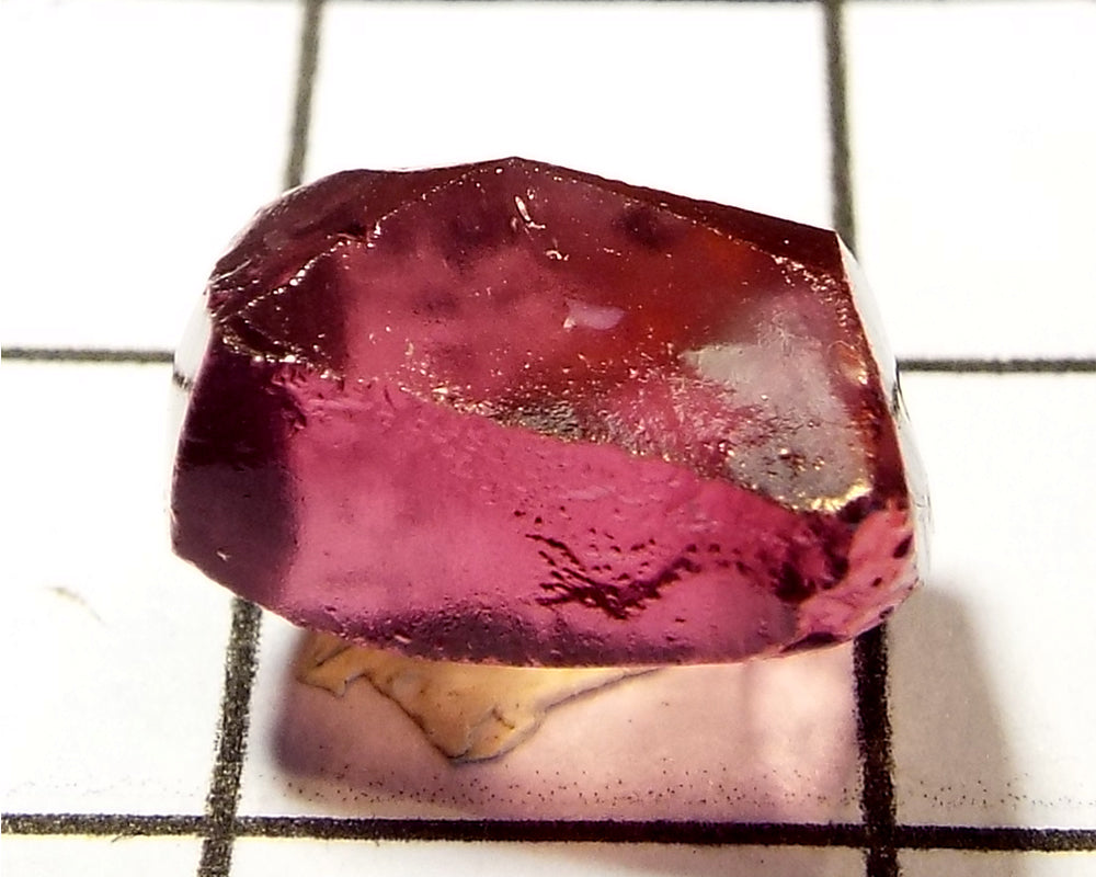 A bright medium-strong pink-purple stone from Mozambique, showing a darker purple-pink 'C' axis.