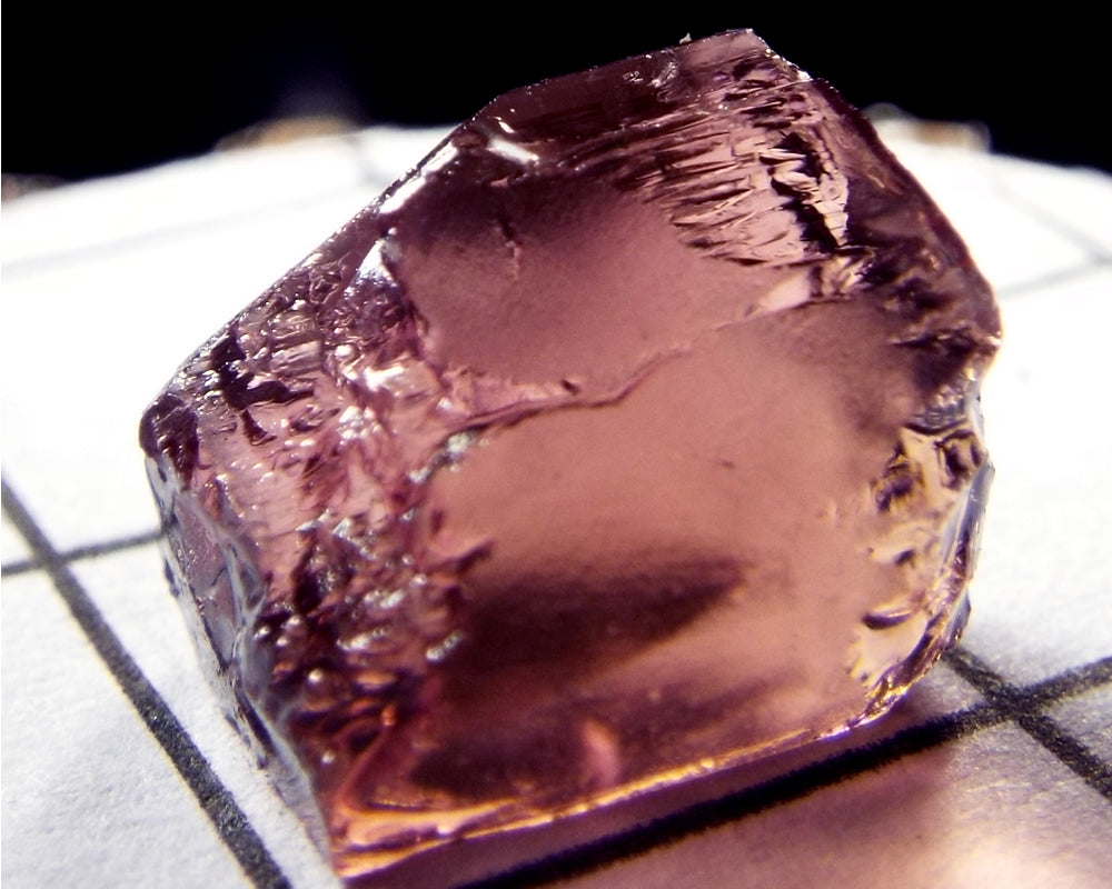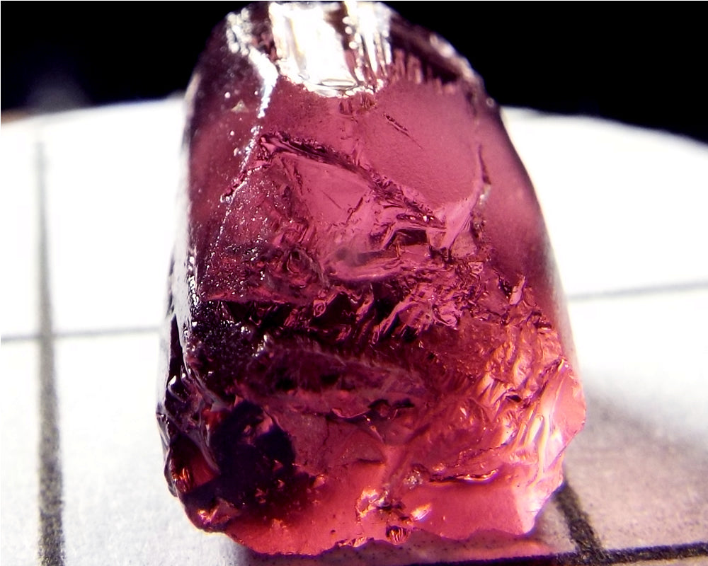A  bright medium-strong pink-purple stone from Mozambique, showing a darker purple-pink 'C' axis.