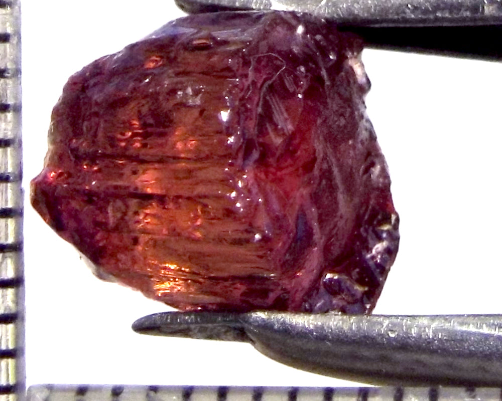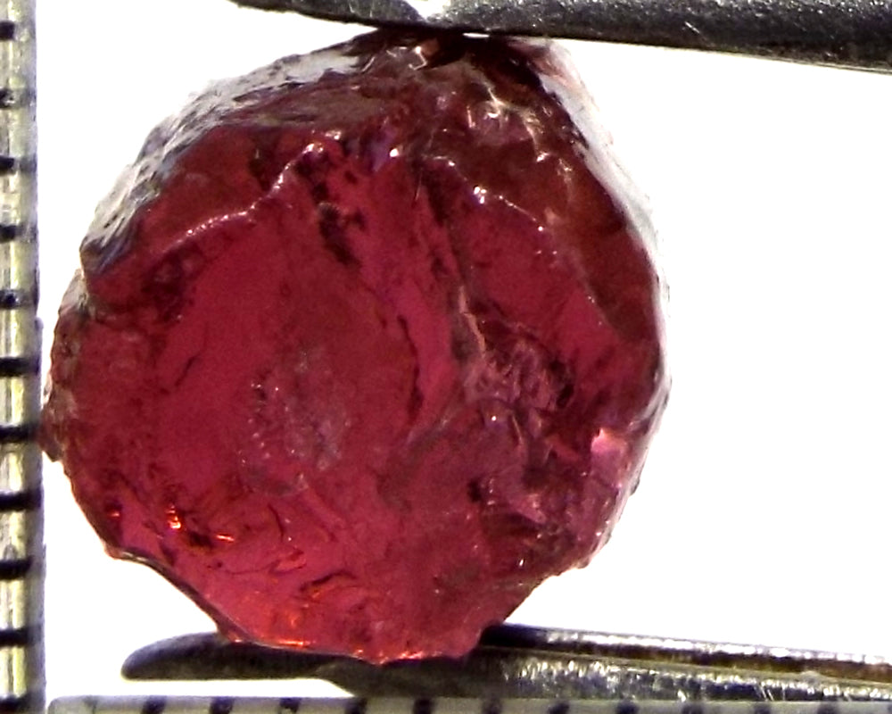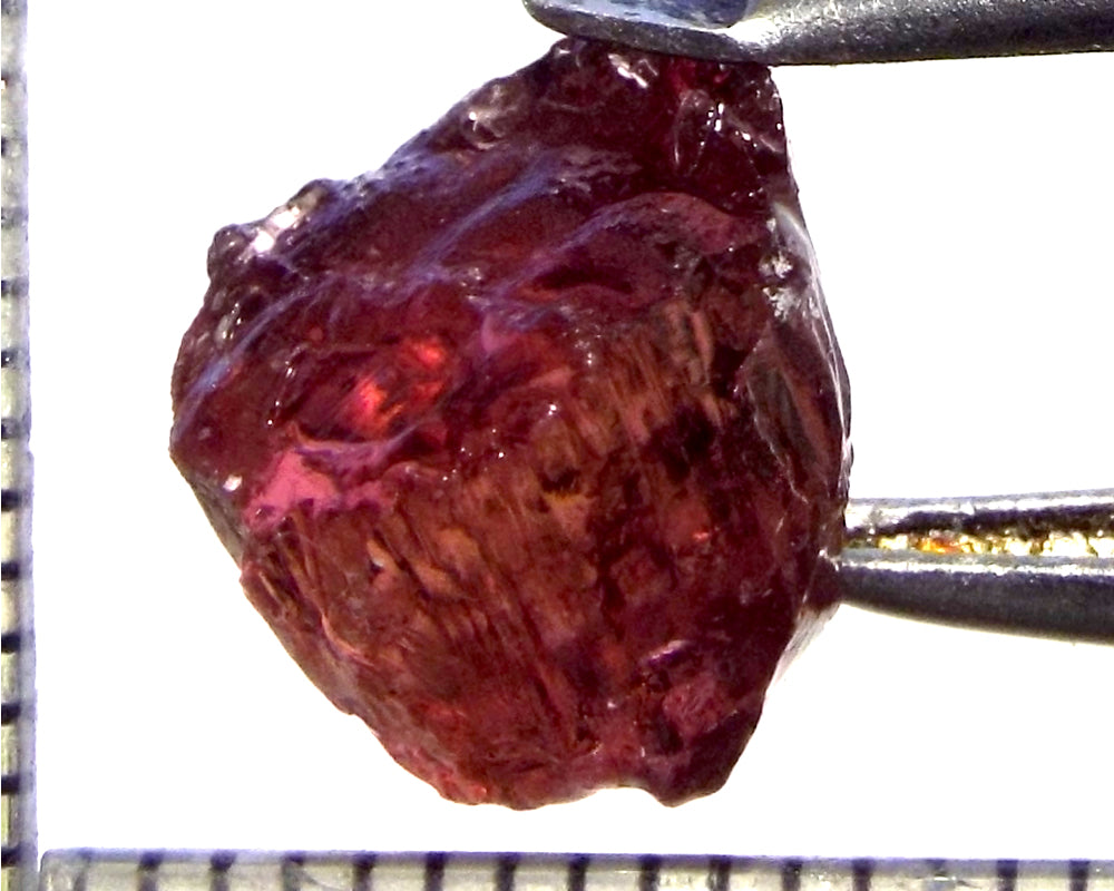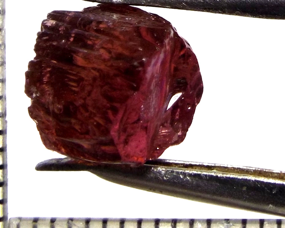 A  bright medium purple-pink stone from Mozambique, showing a deeper purple-pink 'C' axis.