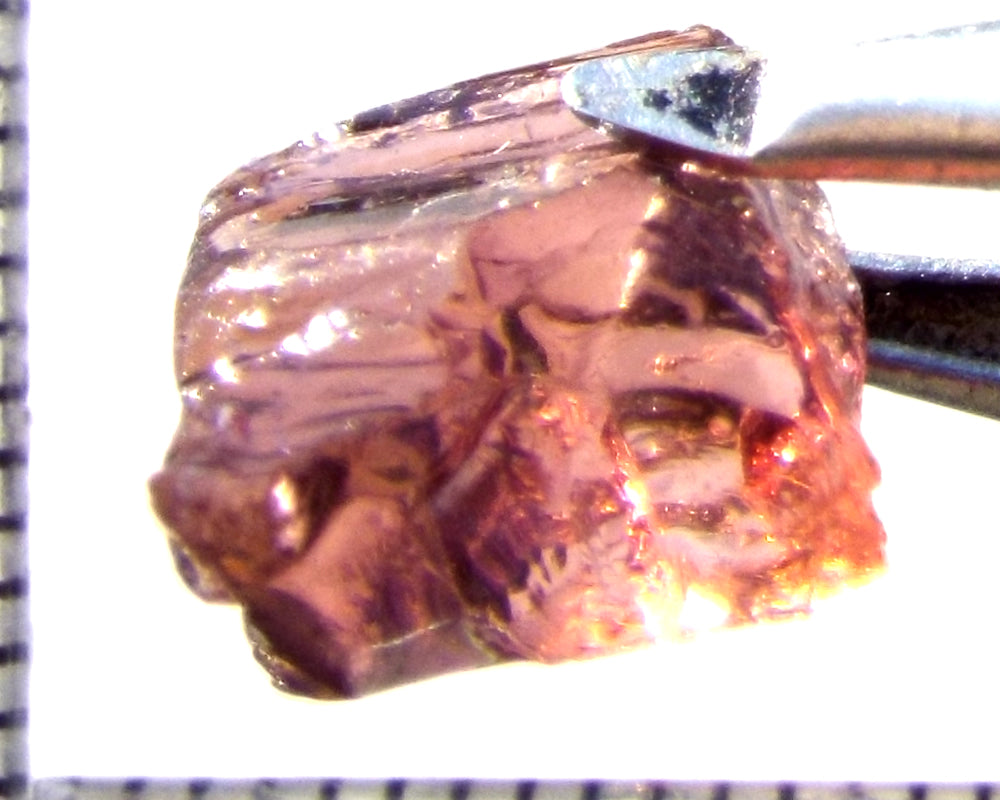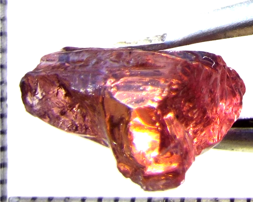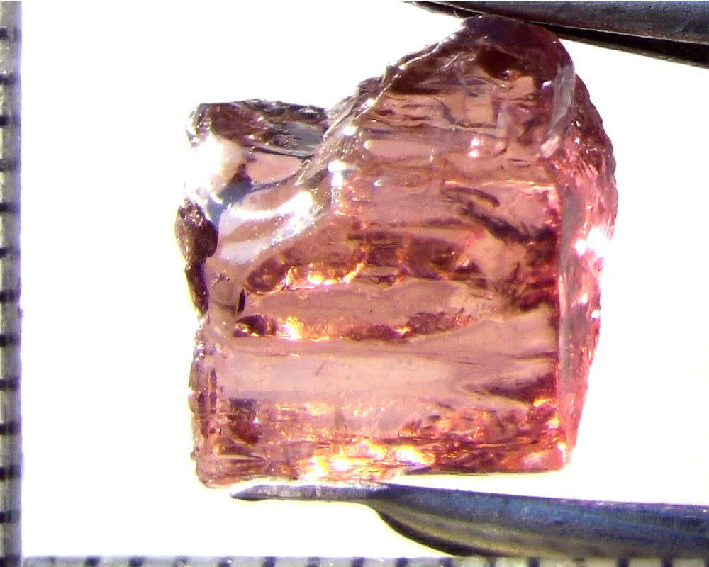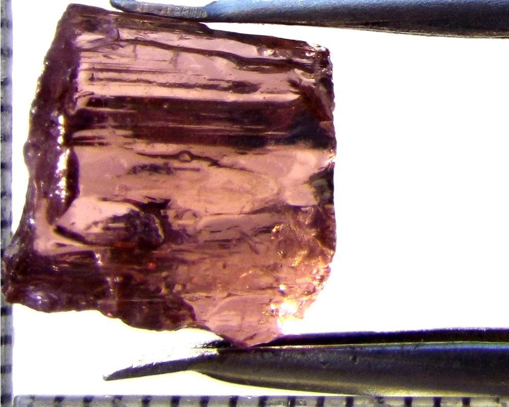 A  bright, medium-strong purple-pink stone from Mozambique, showing a deeper purple-pink 'C' axis.