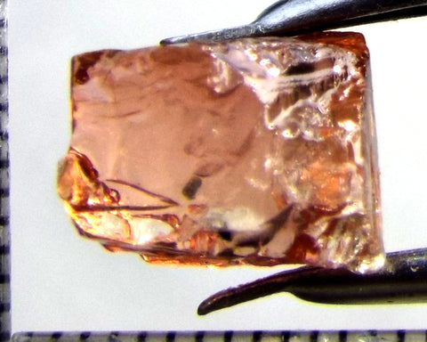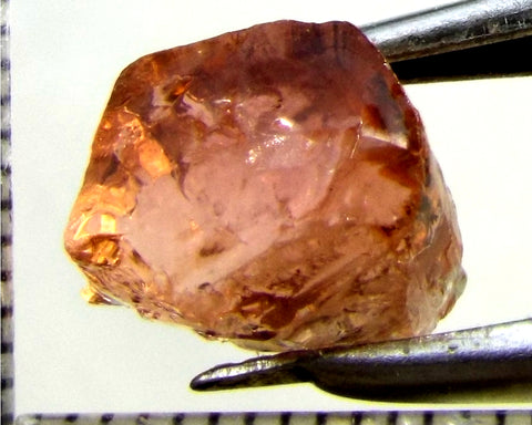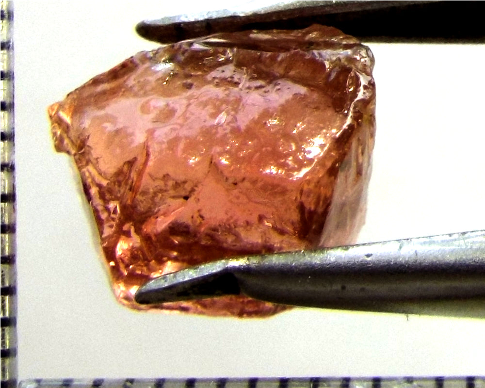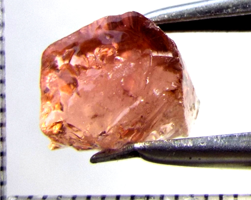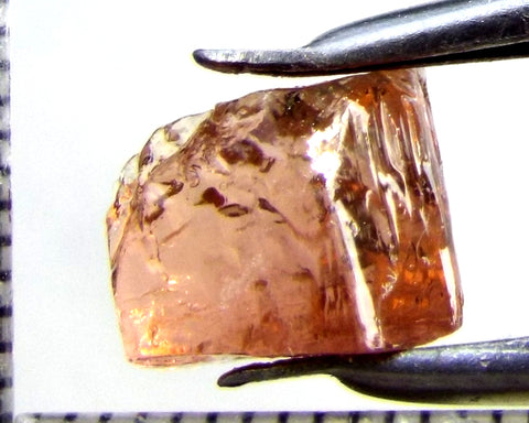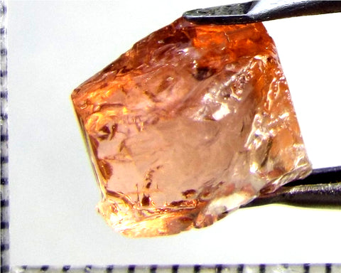 Tourmaline – Mozambique – 7.05 cts - Ref. TOB-659 A bright, medium-light orange-pink stone from Mozambique, showing a deeper colour through the 'C' axes. Graded AAA and weighing 7.05cts. Priced at just $7.00 per carat, a total of $49.00 The scale shown is in millimetres Now beat that for value!