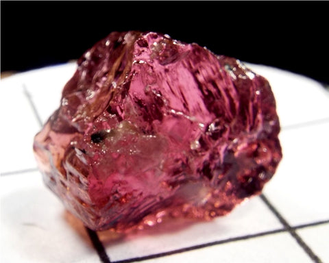 A bright medium-strong pink-purple stone from Mozambique, showing a darker purple-pink 'C' axis.