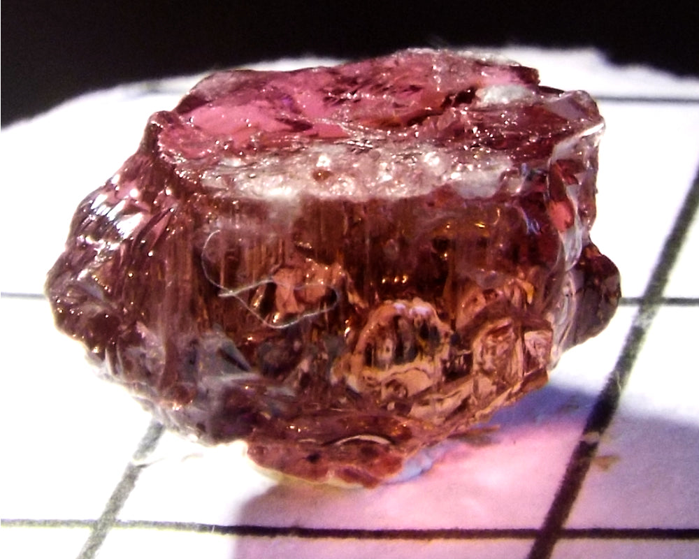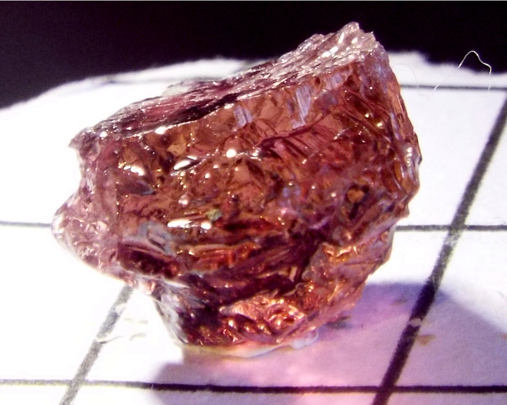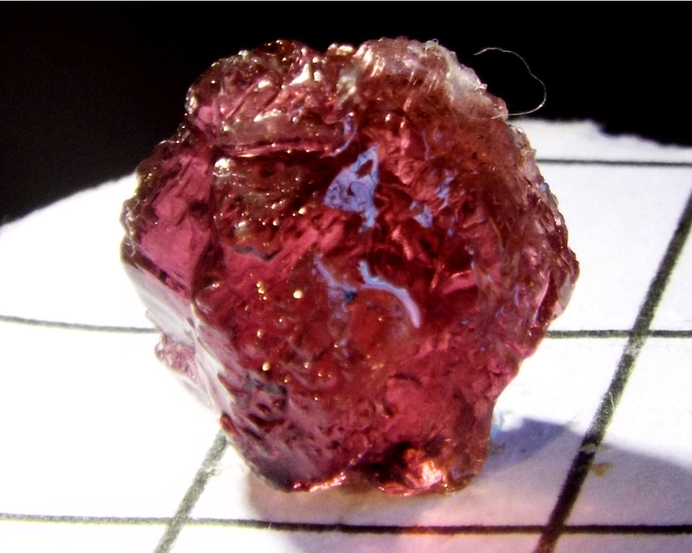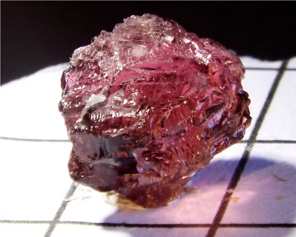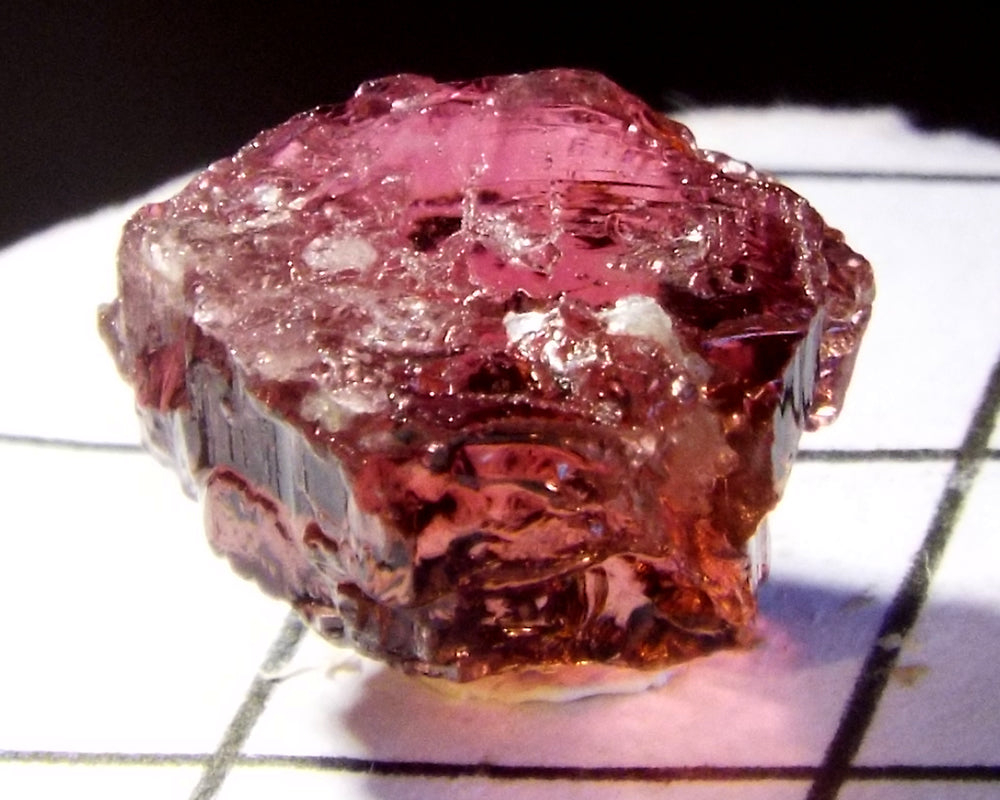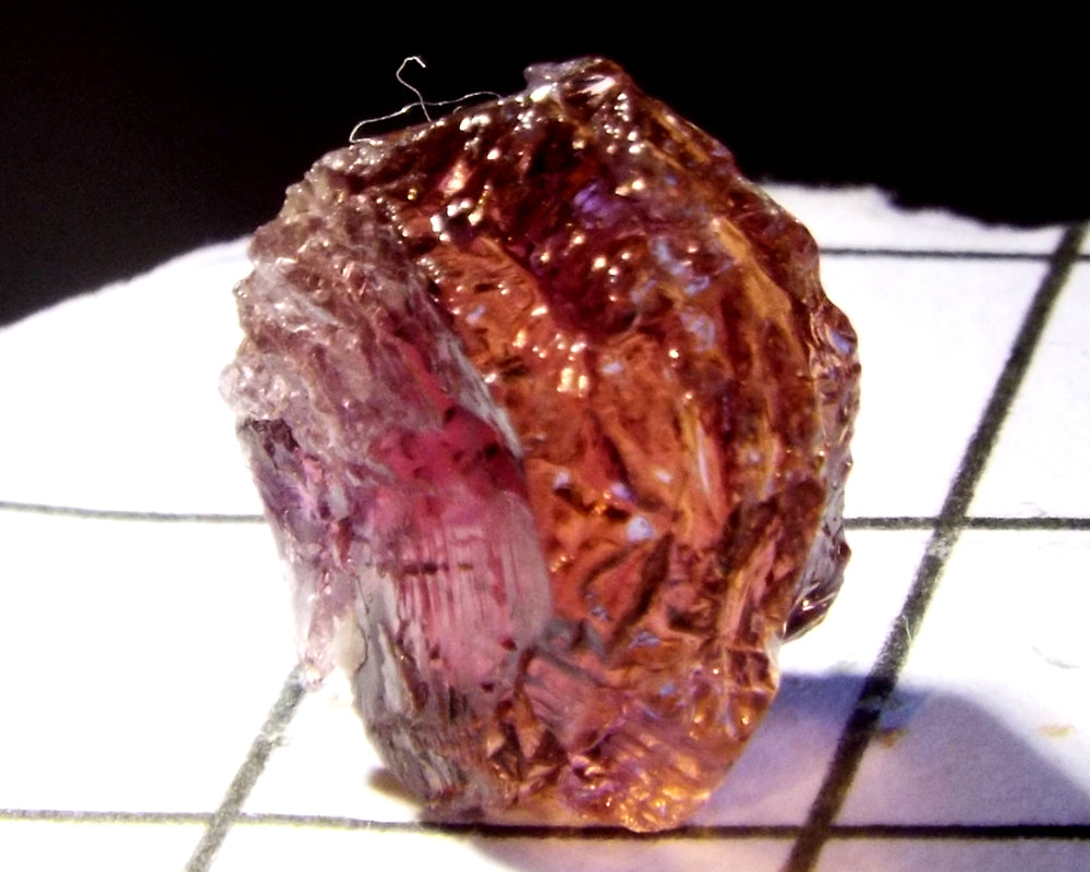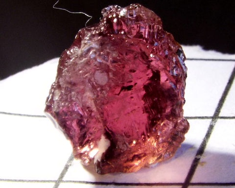 A bright medium-strong pink-purple stone from Mozambique, showing a darker purple-pink 'C' axis.