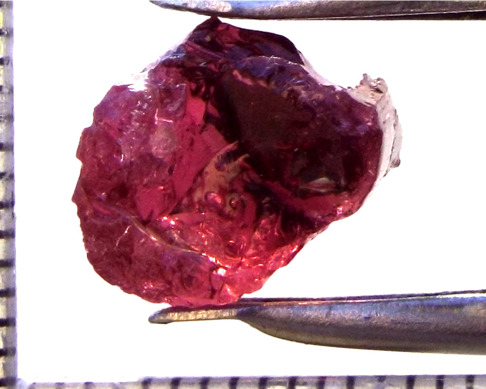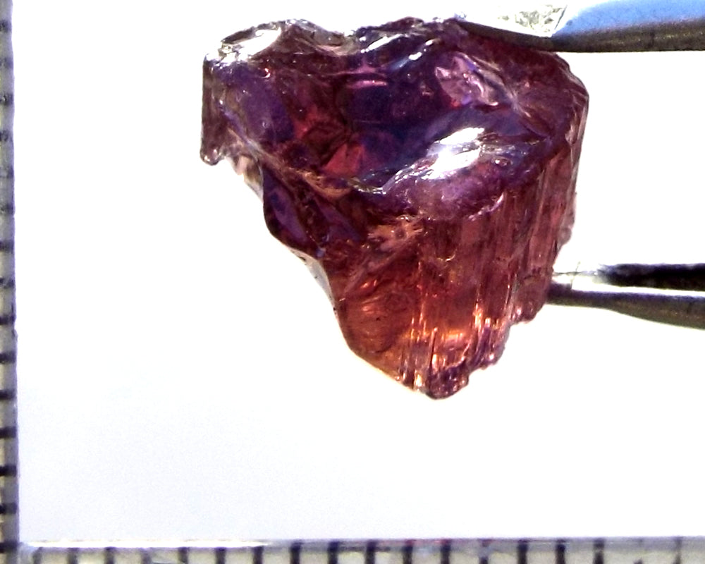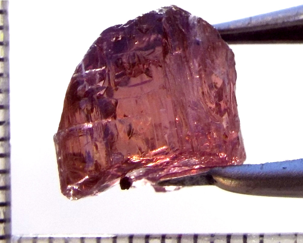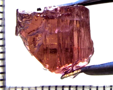 Tourmaline – Mozambique – 7.81cts - Ref. TOB-733 A brightmediumpurple-pink stone from Mozambique, showing a deeper purple-pink 'C' axis. Graded AAA and weighing 7.81cts. Priced at just $8.00 per carat, a total of $62.00 The scale shown is in millimetres Now beat that for value