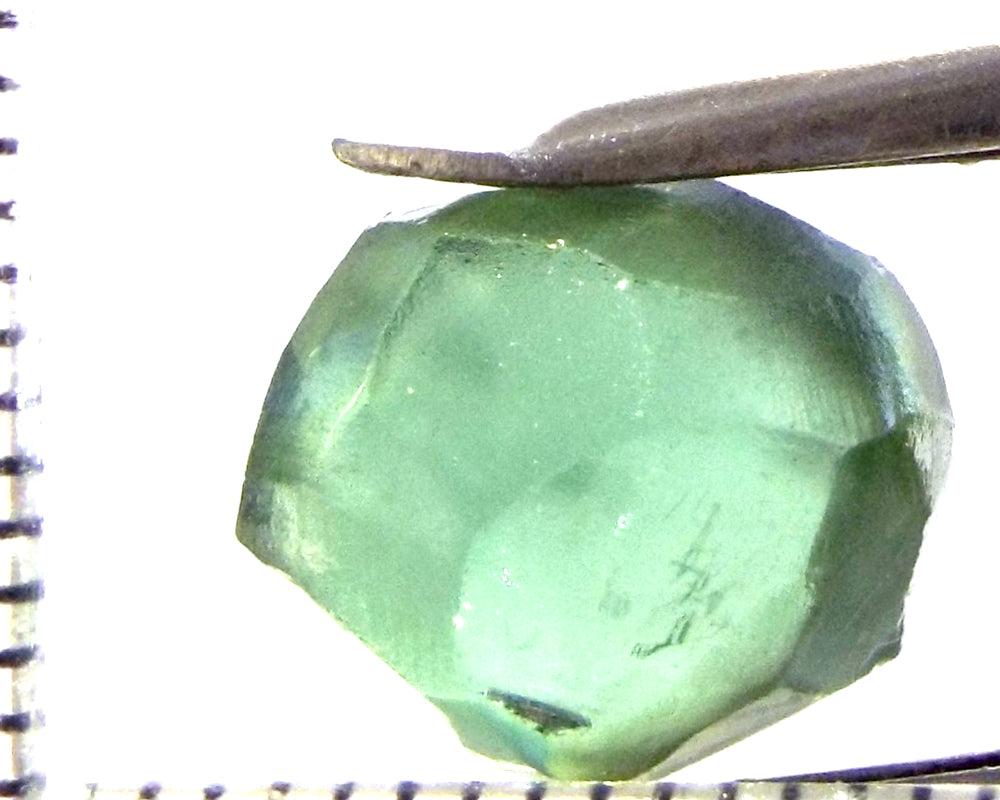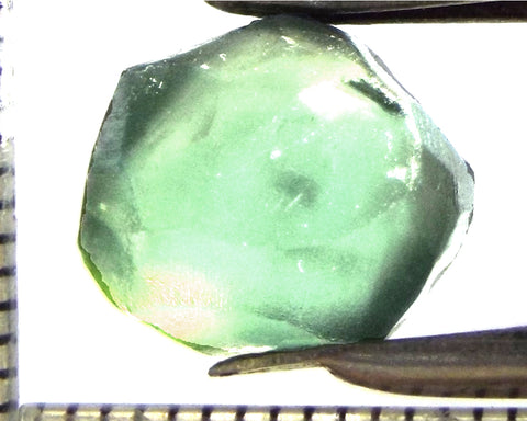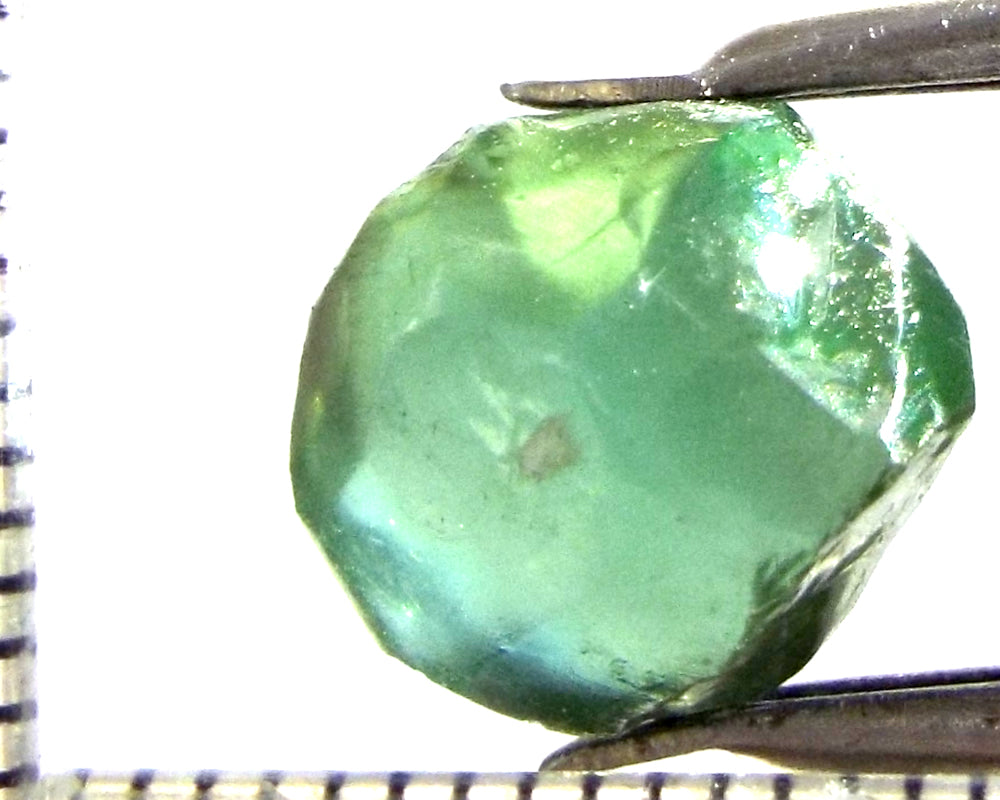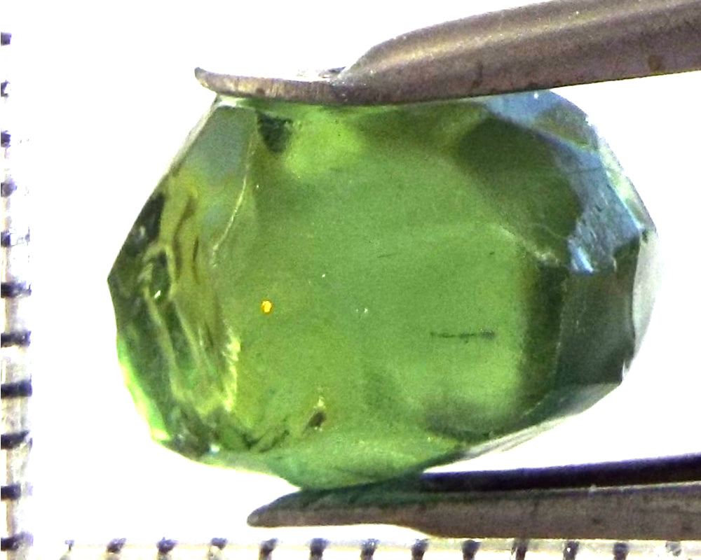 A  bright medium blue to yellow-green stone from Mozambique, showing a darker green 'C' axis. This is a rare and usual colour in Mozambique Tourmaline and the first we have seen.