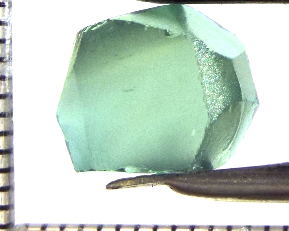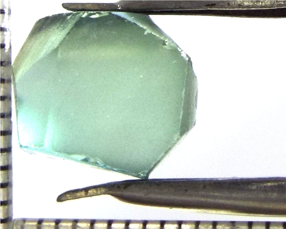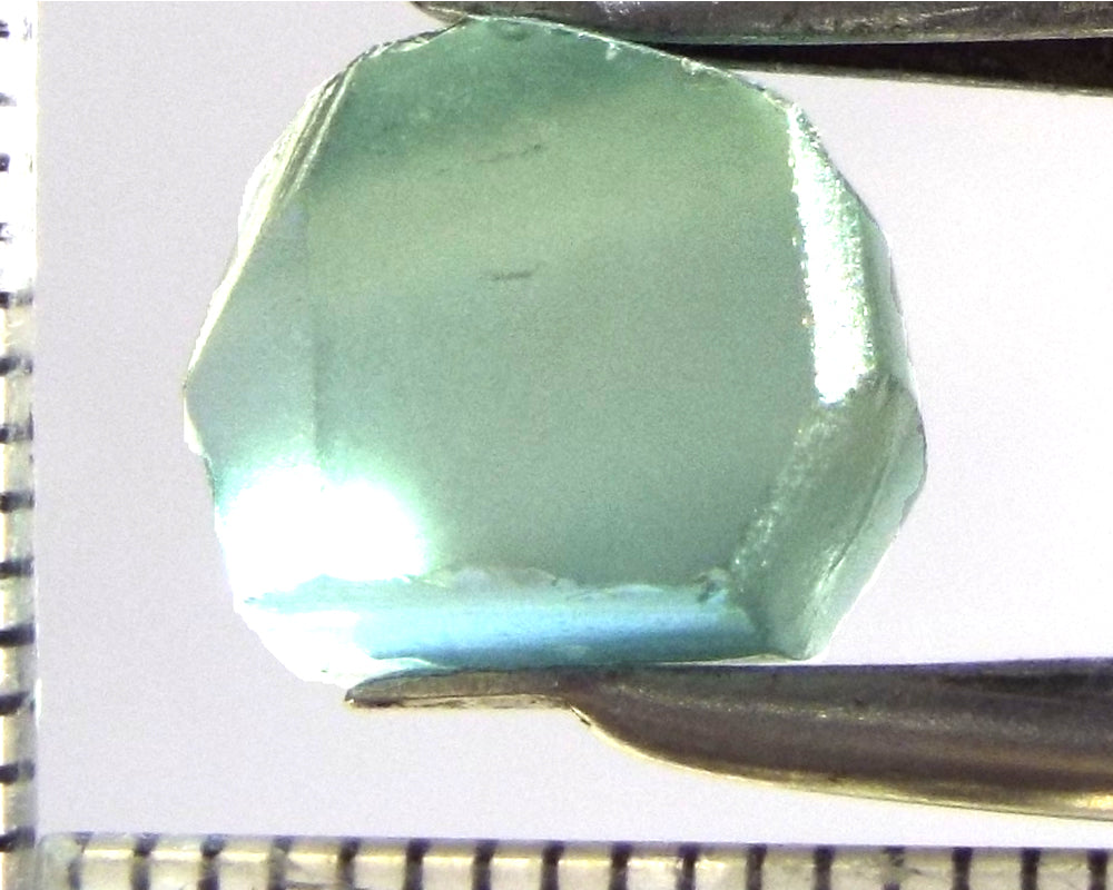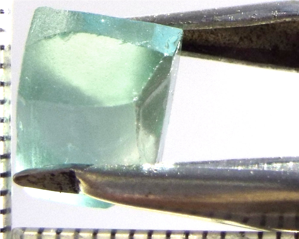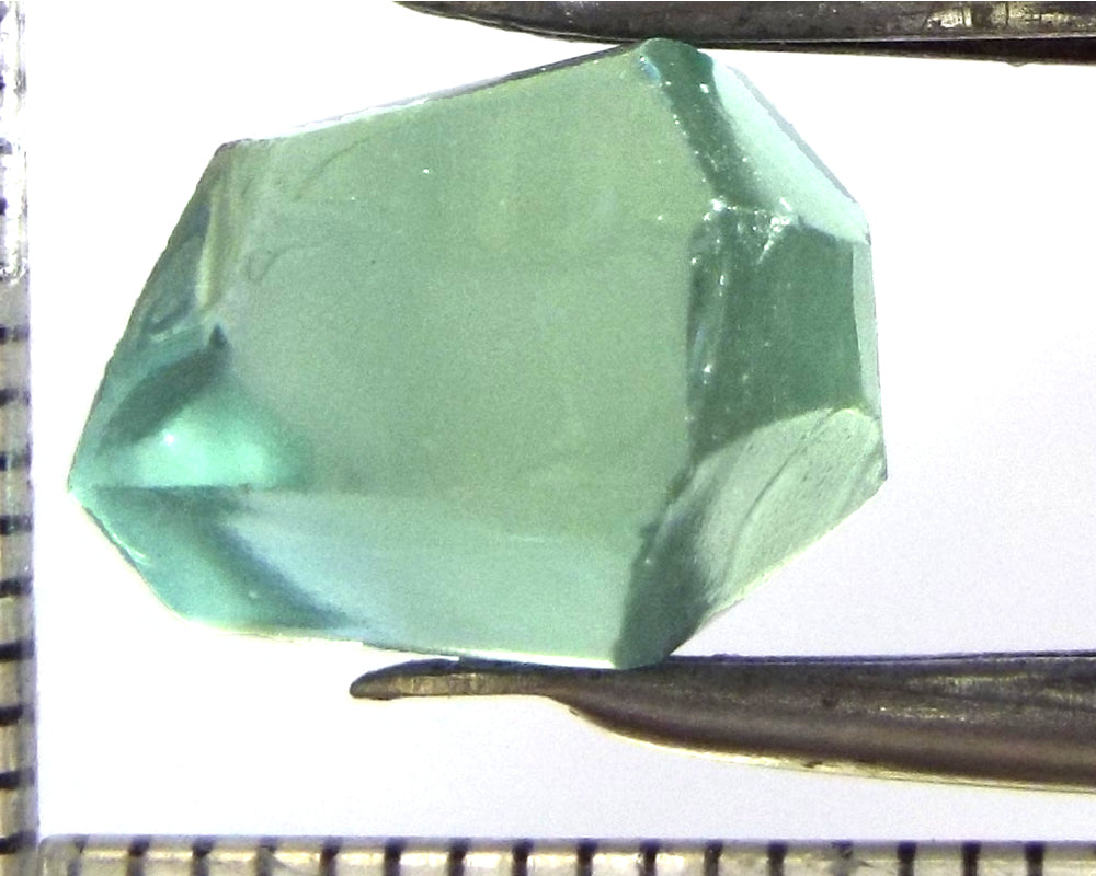 A bright medium-light blue-green stone from Mozambique, showing a slightly darker 'C' axis. This is a rare and usual colour in Mozambique Tourmaline and the first we have seen.