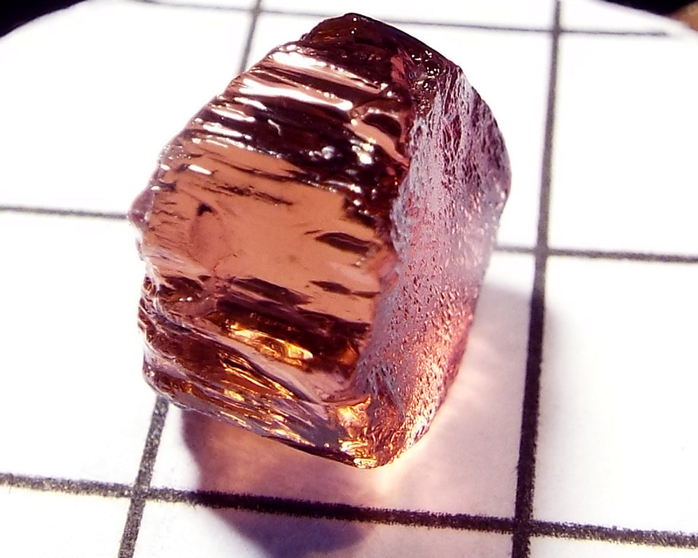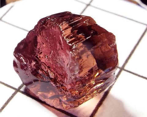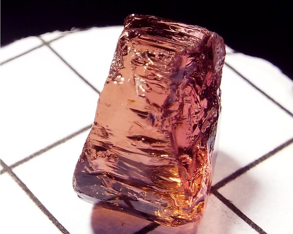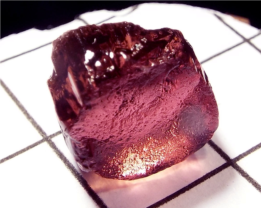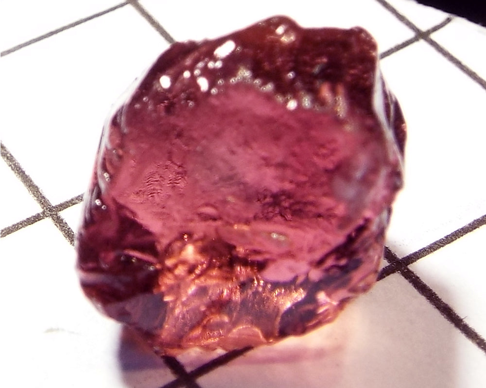 A bright medium-strong pink-purple stone from Mozambique, showing a darker purple-pink 'C' axis.