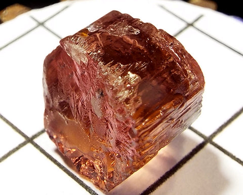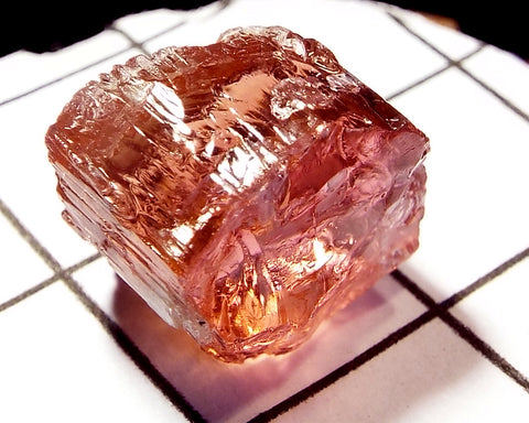 A bright medium-light pink-purple stone from Mozambique, showing a darker purple-pink 'C' axis.