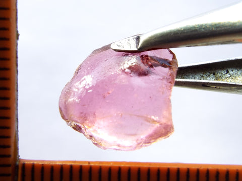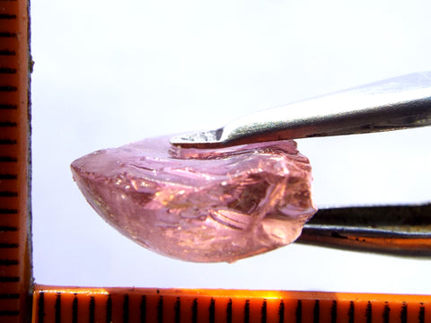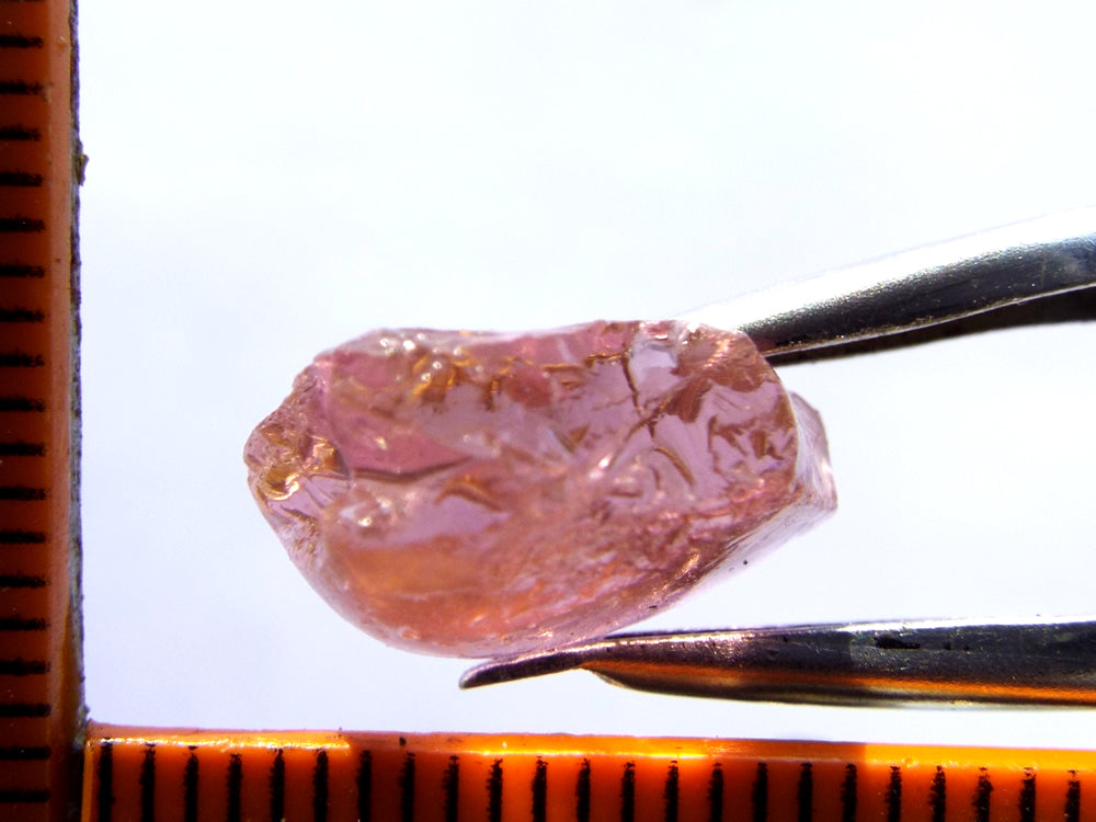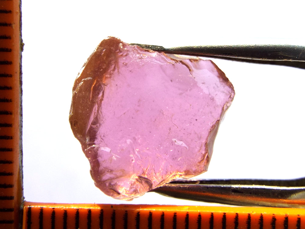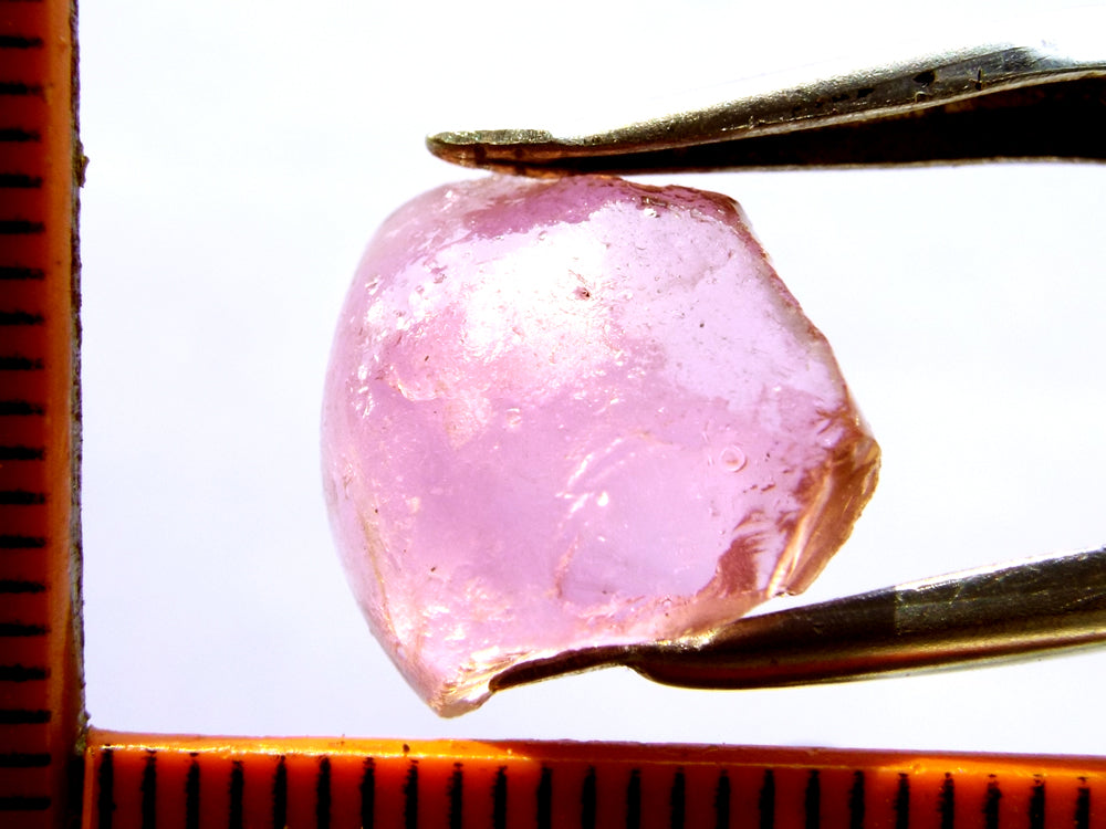 A  bright medium-strong pink stone from the Congo, open 'C' axis, slightly shallow in shape.
