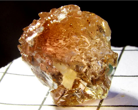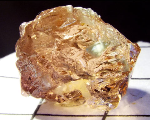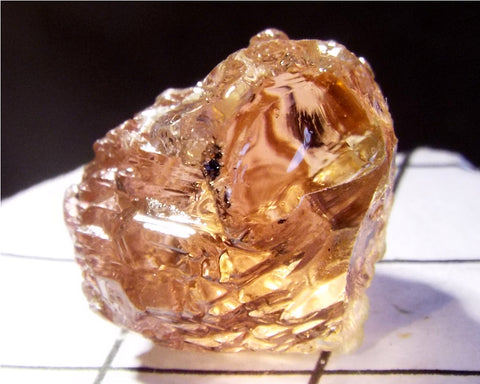 A  superb bright medium orange-pink stone from Mozambique, showing a slight bicolour effect from a pale yellow-green to darker orange-pink  with a orange-pink 'C' axis.